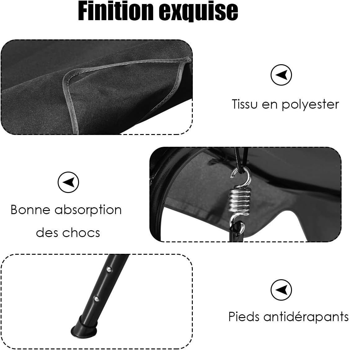 - Garantie de sécurité : Deux ressorts de suspension solides de la balancelle de jardin, non seulement résistant à l'usure, mais également dotés d'une forte capacité de charge. En outre, le support en acier épais, quatre pieds ont un châssis plus stable. Cela garantit pleinement votre sécurité au repos.