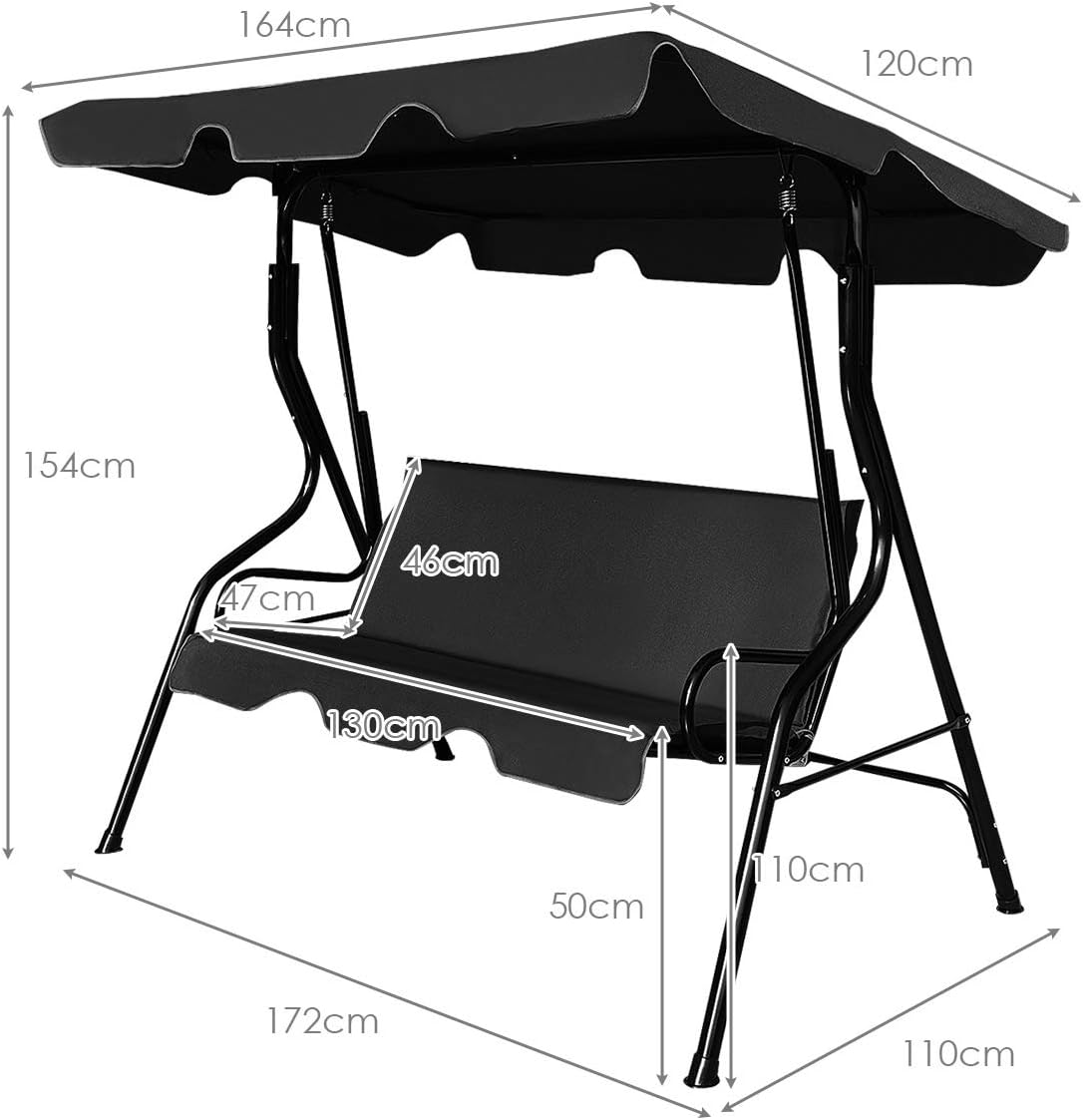 Balancelle de jardin 3 places balançoire extérieur avec auvent, inclinaison réglable coussins assise noir