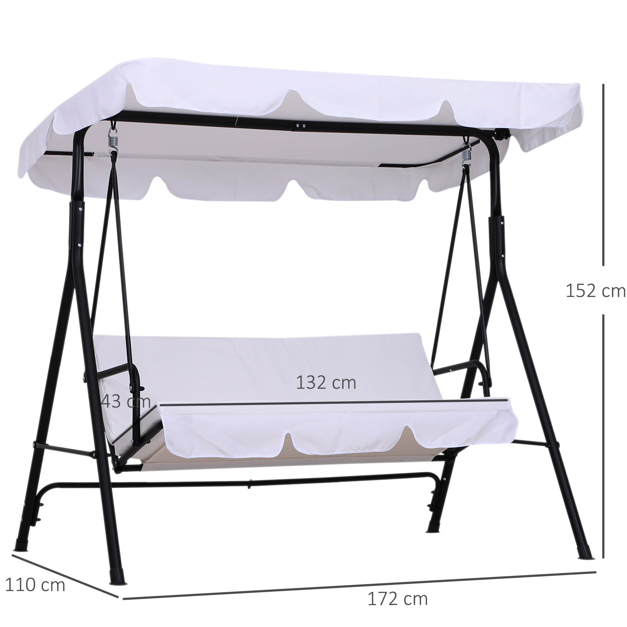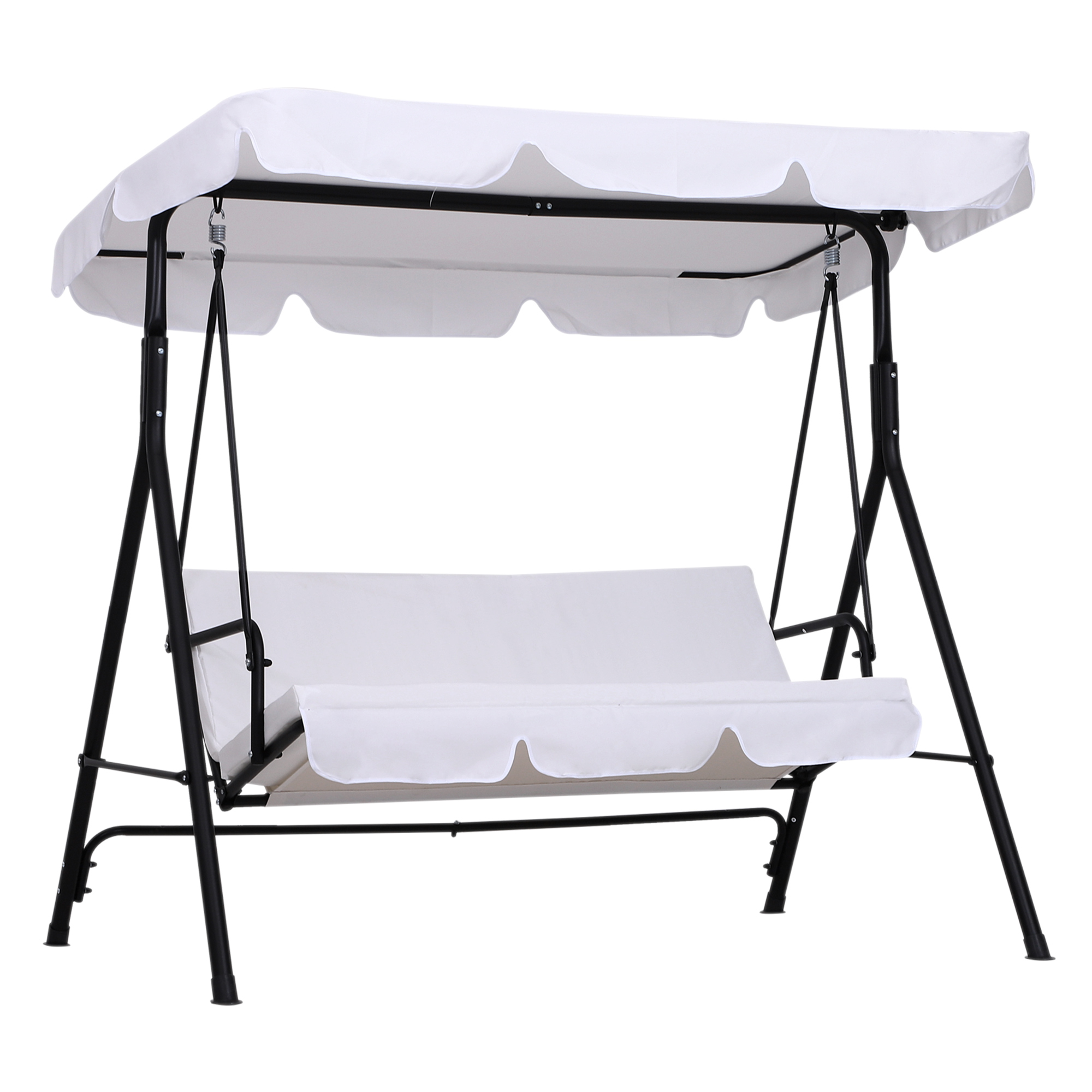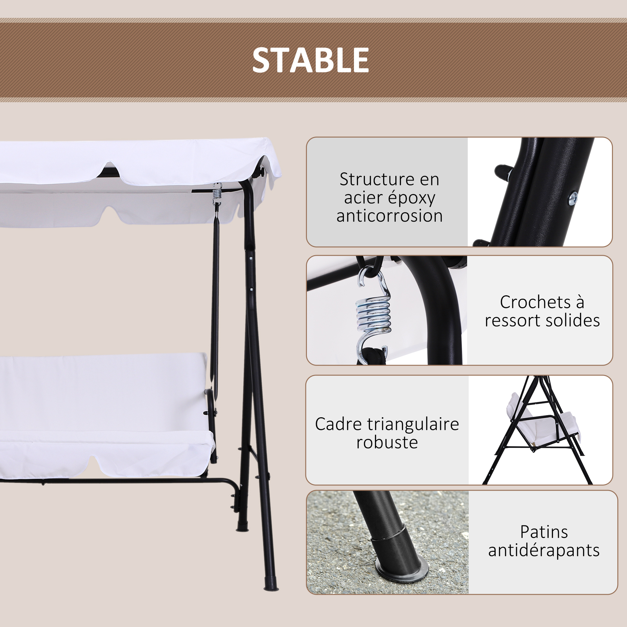 | Libellé | Balancelle de jardin 3 places toit inclinaison réglable coussins assise et dossier 1,72L x 1,1l x 1,52H m acier noir polyester blanc |