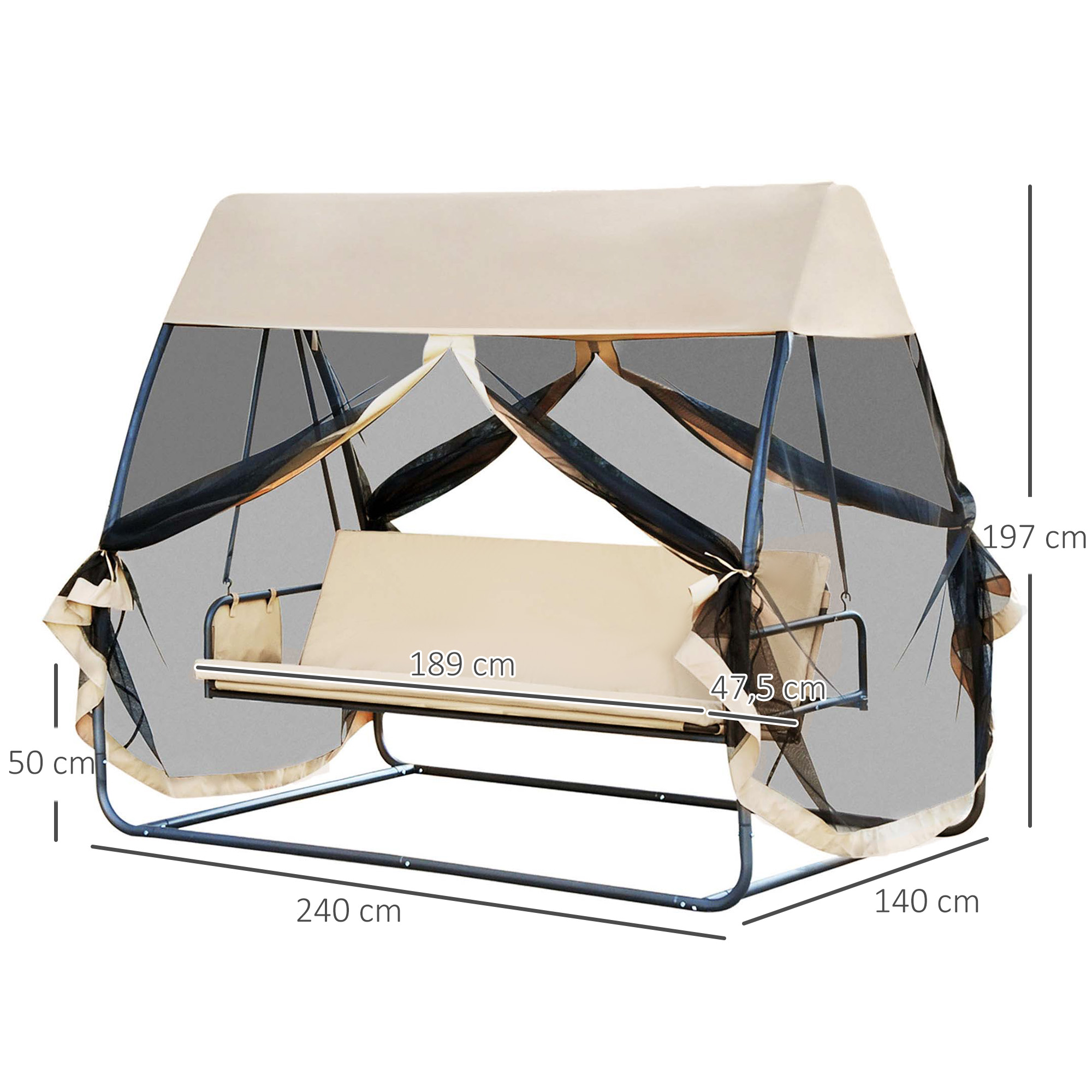 Balancelle de jardin convertible 3 places grand confort : matelas assise dossier, moustiquaire intégrale