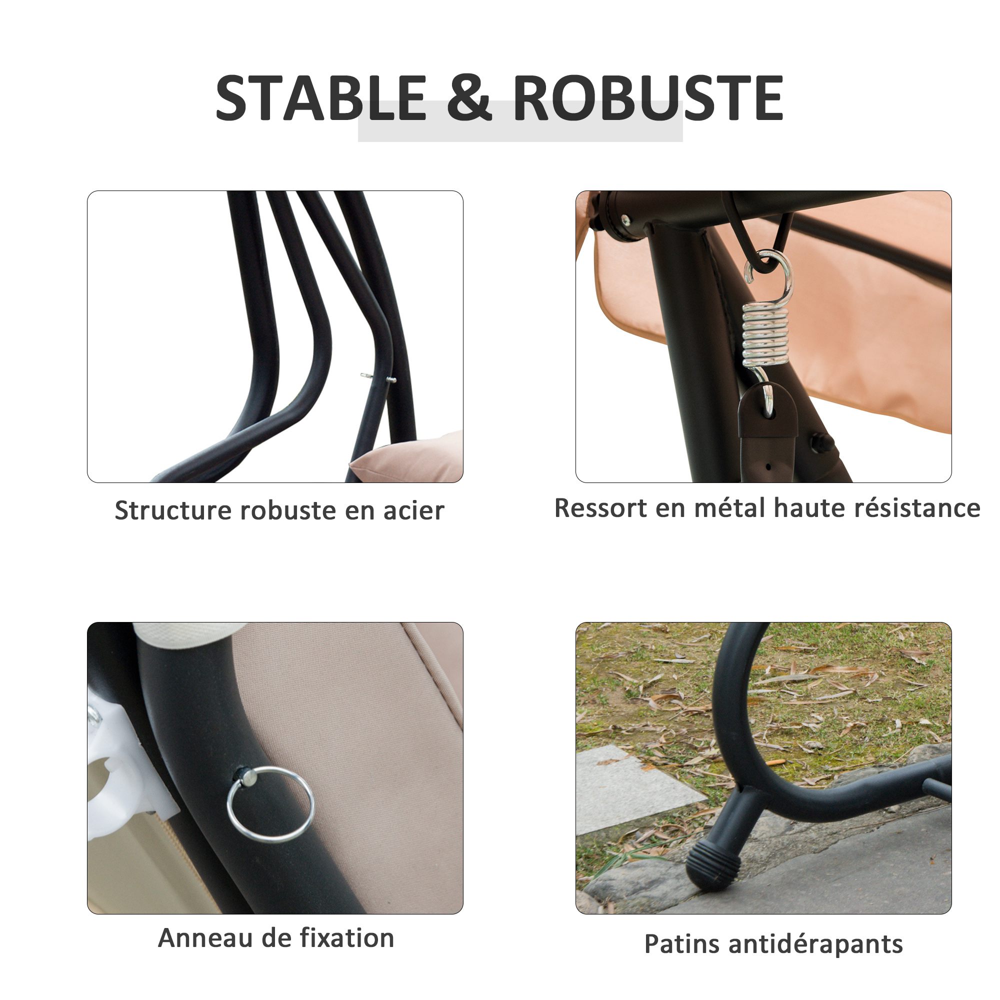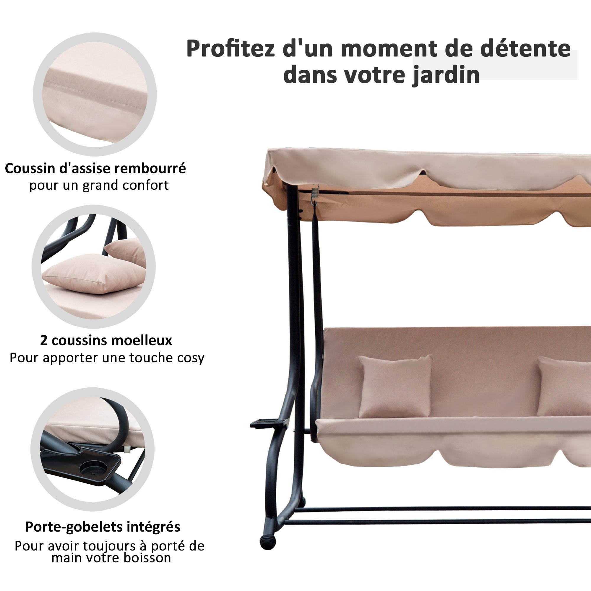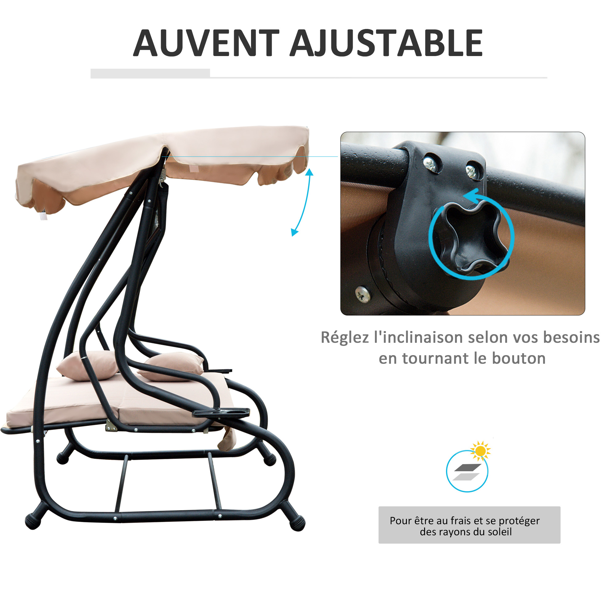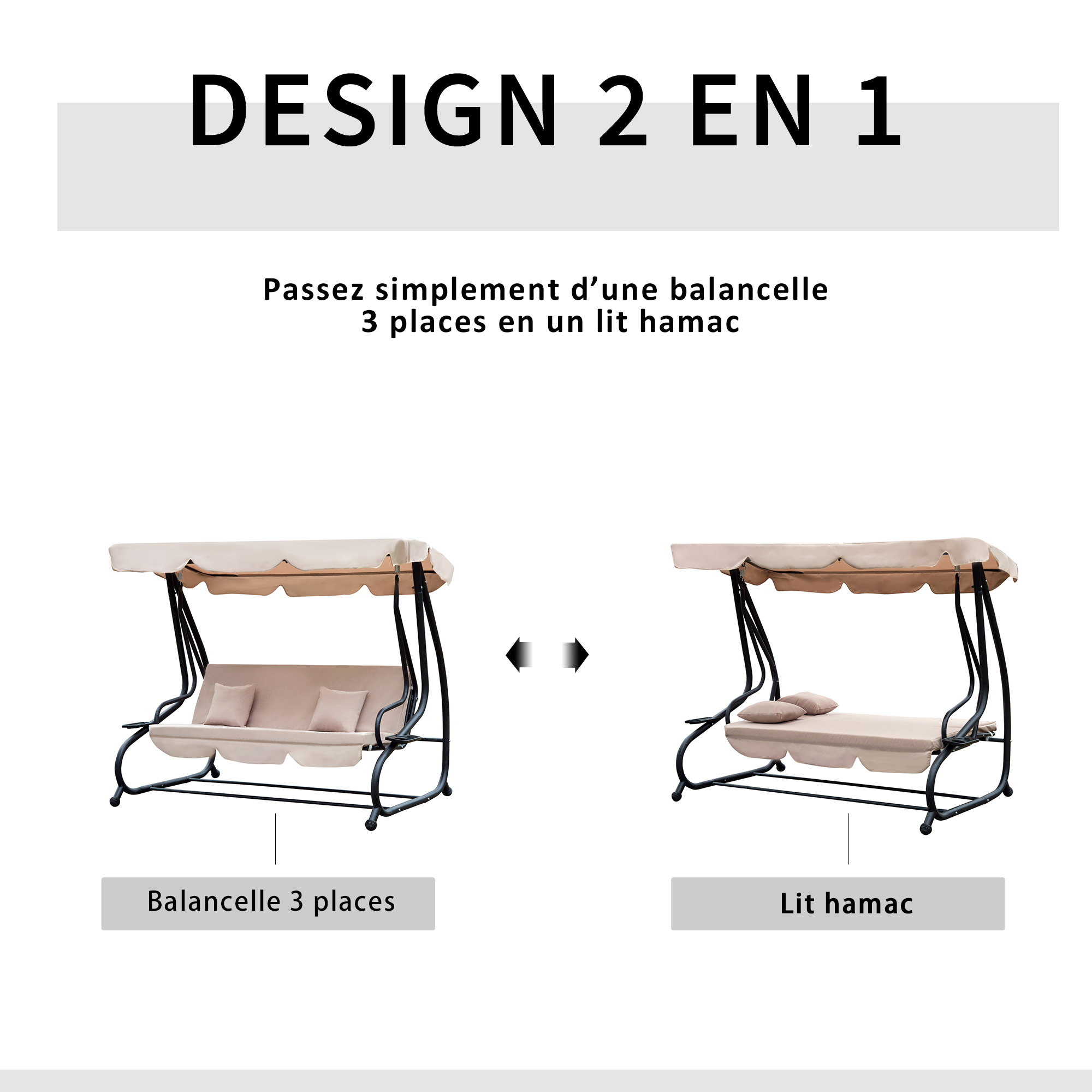 - Balancelle convertible 3 places : modèle spacieux et confortable pour s'asseoir ou s'allonger au gré de vos envies !