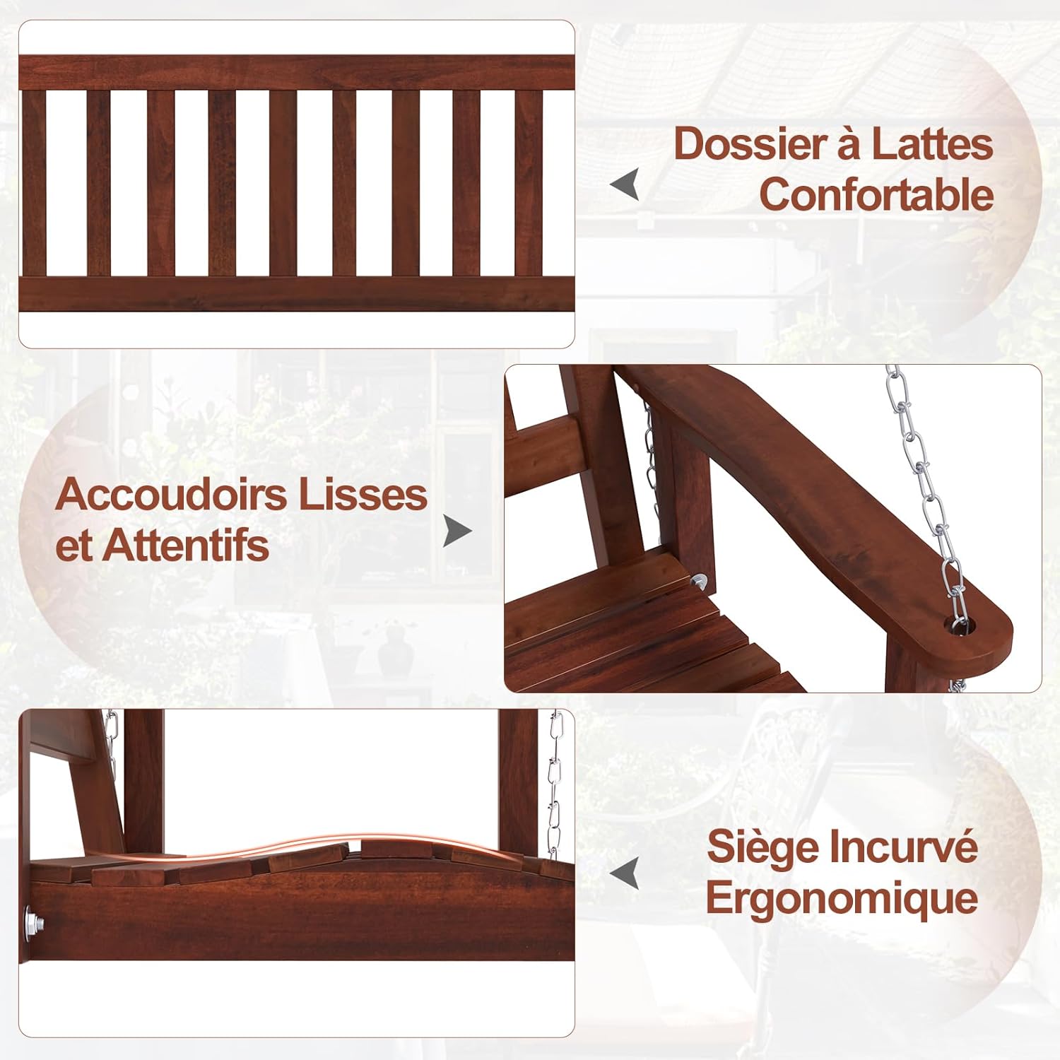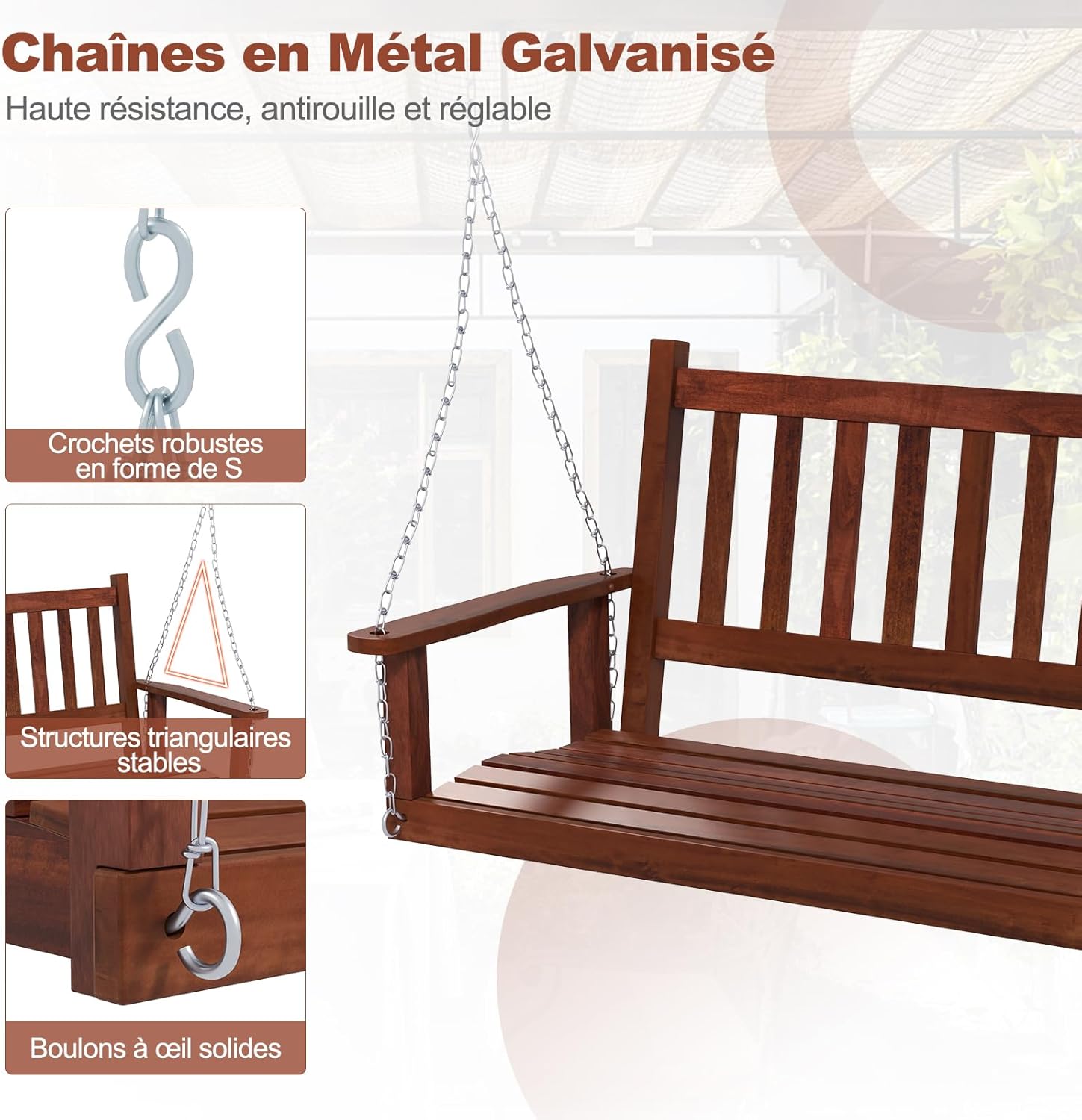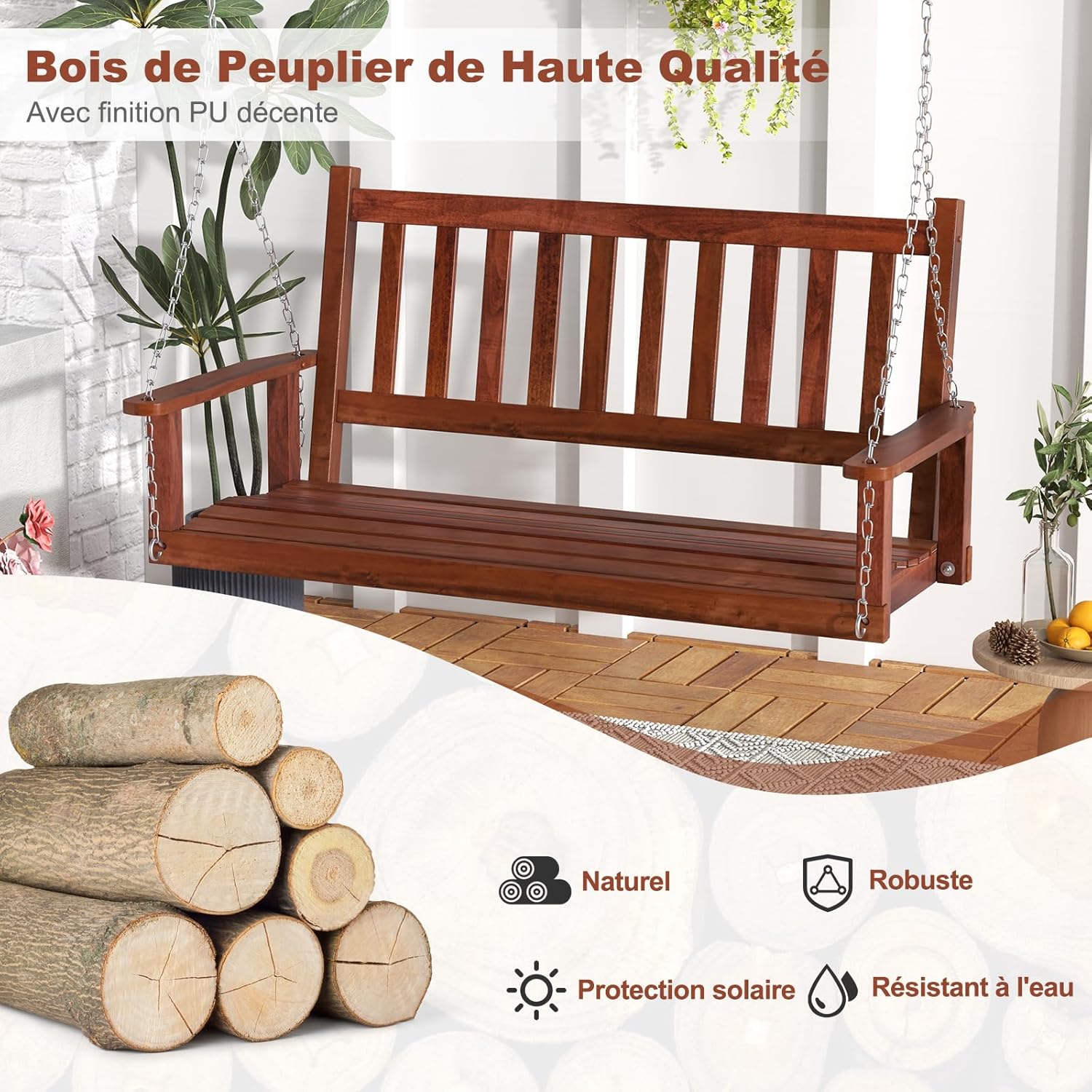 | Libellé | Balançelle jardin 2 places extérieur chaise hamac siège suspnedue bois avec chaînes de suspension marron |