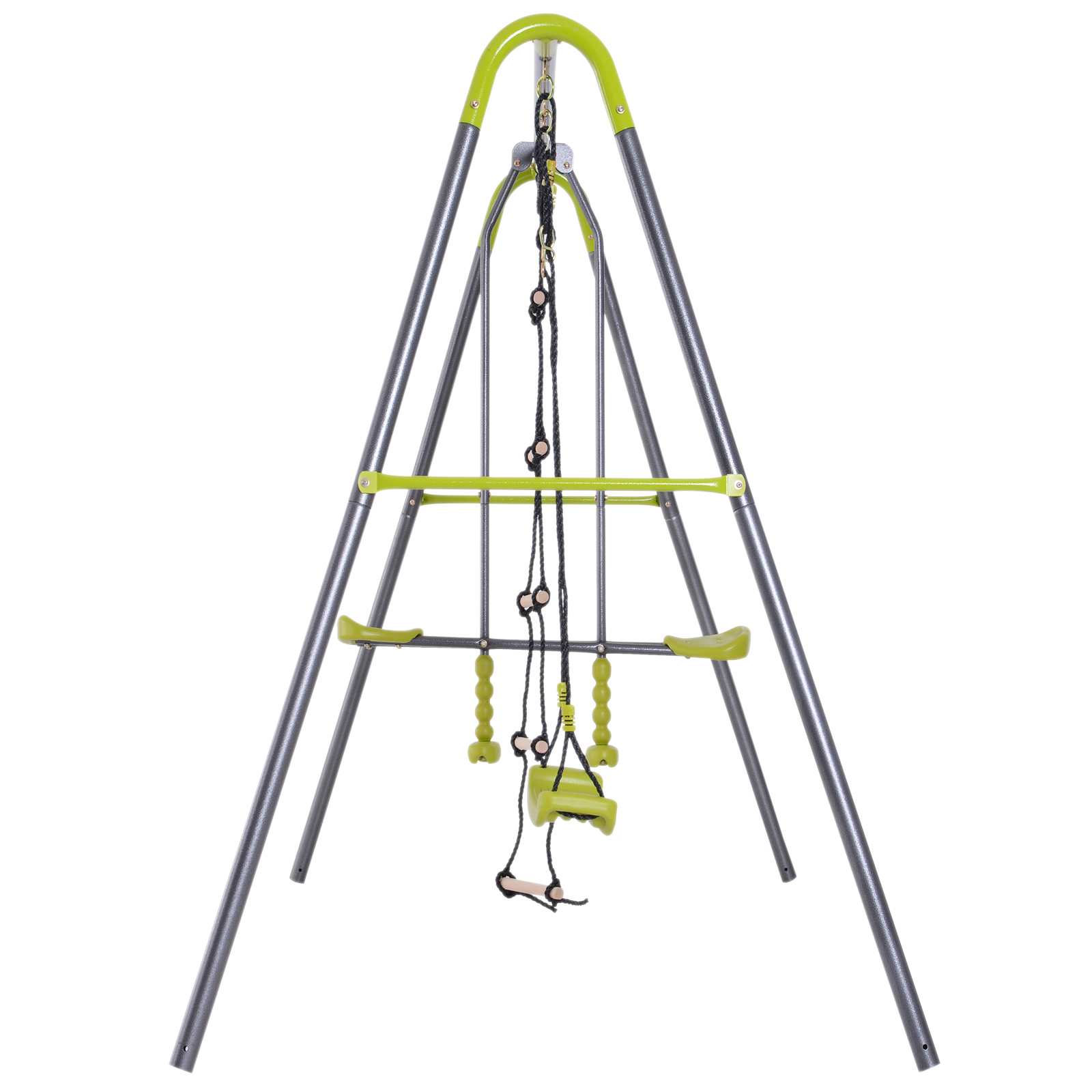 Balançoire 3 agrès portique avec balançoire : 2,95L x 1,38l x 1,75H m métal gris anthracite vert pomme