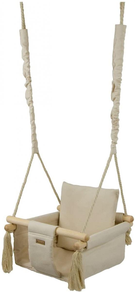 Balançoire bascule confortable pour enfants en bois coton terrasse jardin maison crème