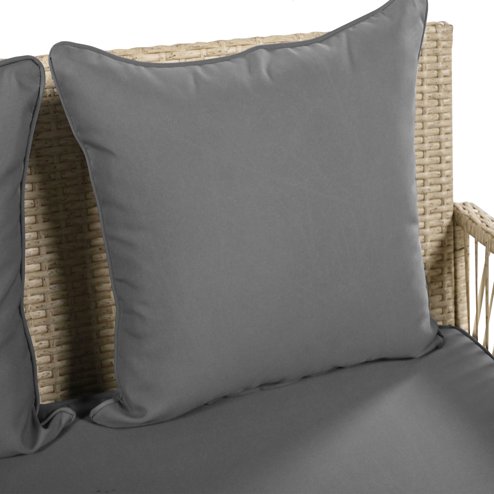 Balançoire de jardin, rotin beige, 2 places avec coussins d'assise et de dossier, déhoussable pour le net