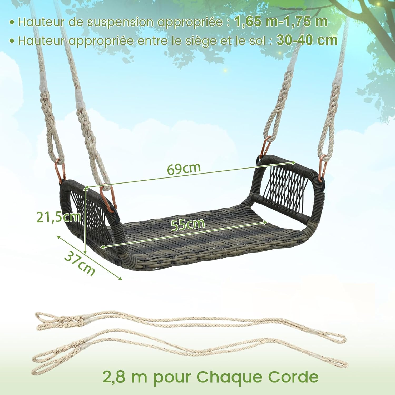 Longueur de chaque corde : 2,8 m