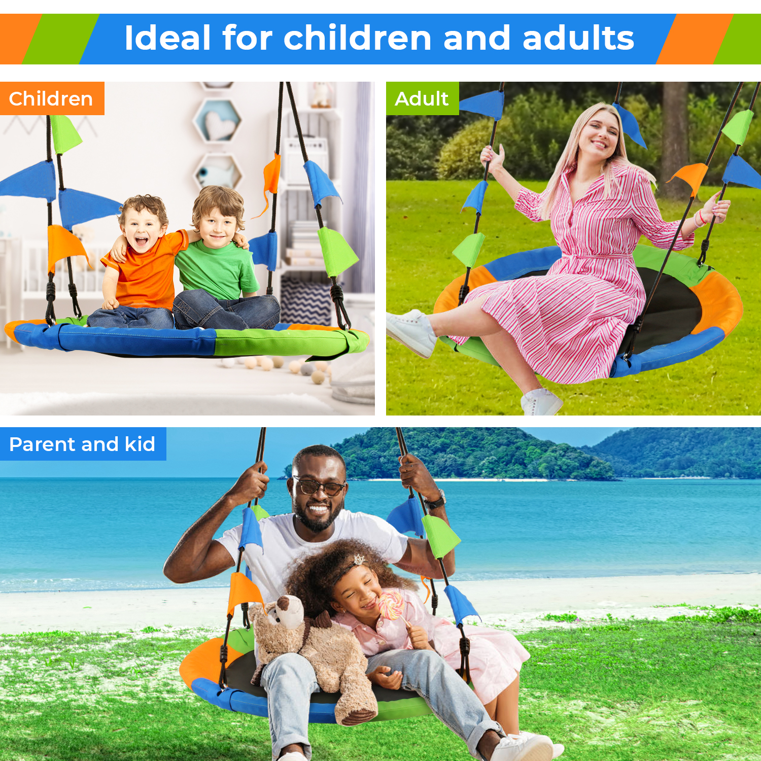 Balancoire nid d'oiseau Ø 120 cm Charge Maximal 300 kg, Réglable en Hauteur de 100 à 180cm, avec Sangles