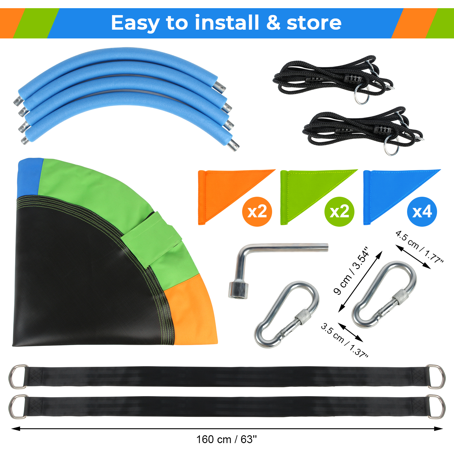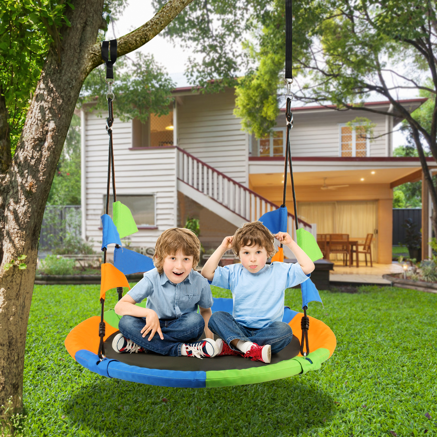 | Libellé | Balancoire nid d'oiseau Ø 120 cm Charge Maximal 300 kg, Réglable en Hauteur de 100 à 180cm, avec Sangles de Suspension Ensemble (Multicolore) |