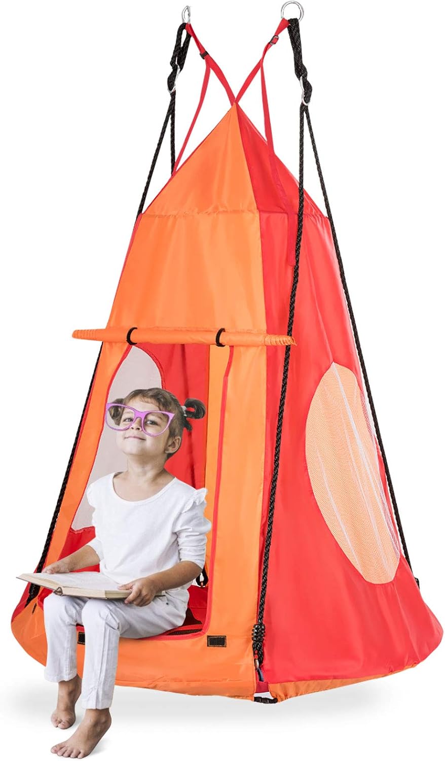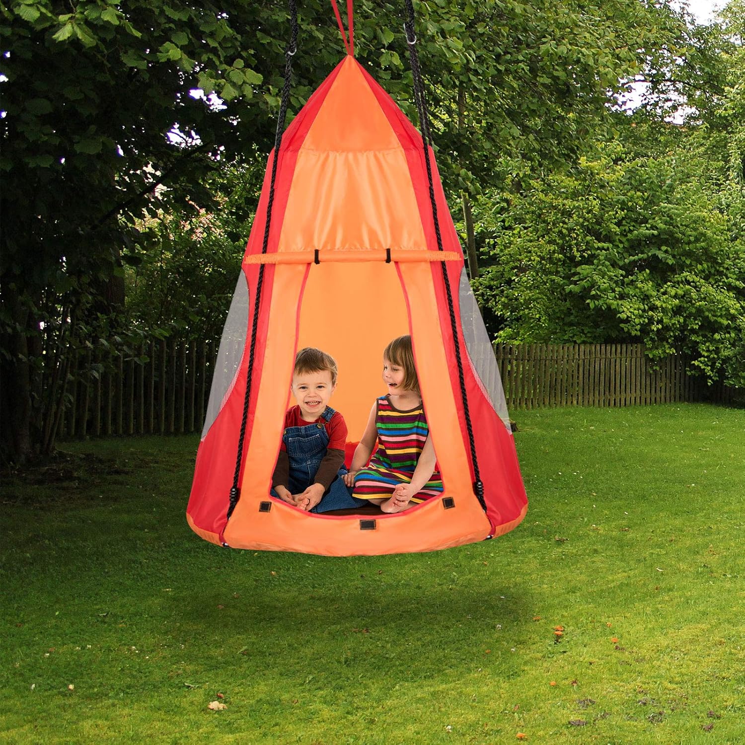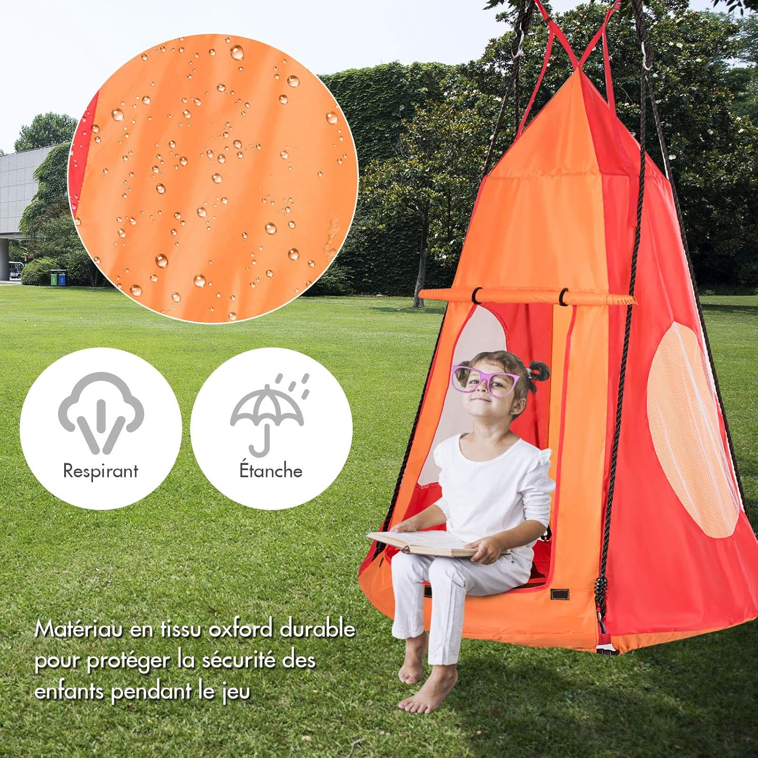Balançoire nid d’oiseau avec tente amovible corde réglable en hauteur charge 150 kg orange avec tente