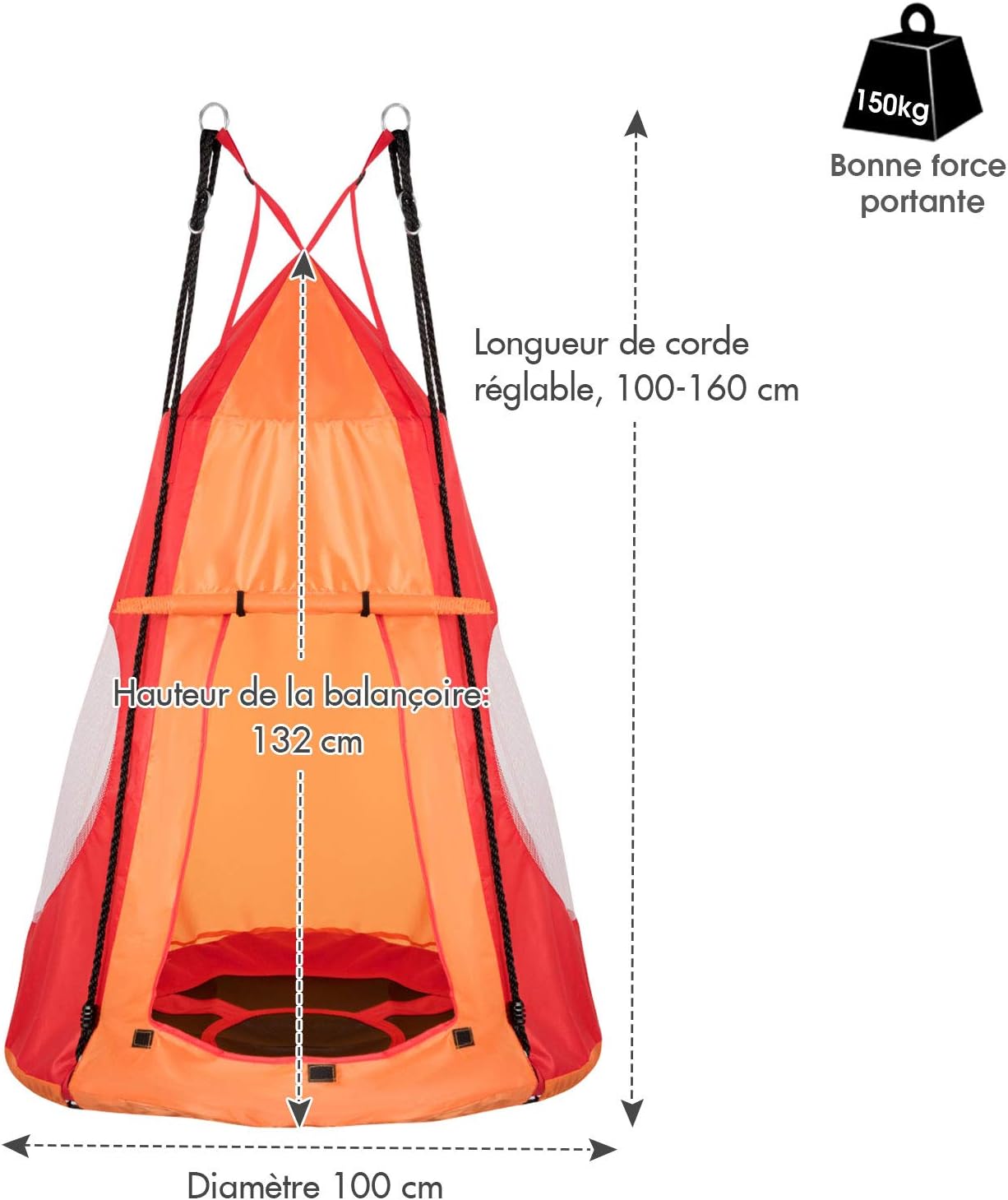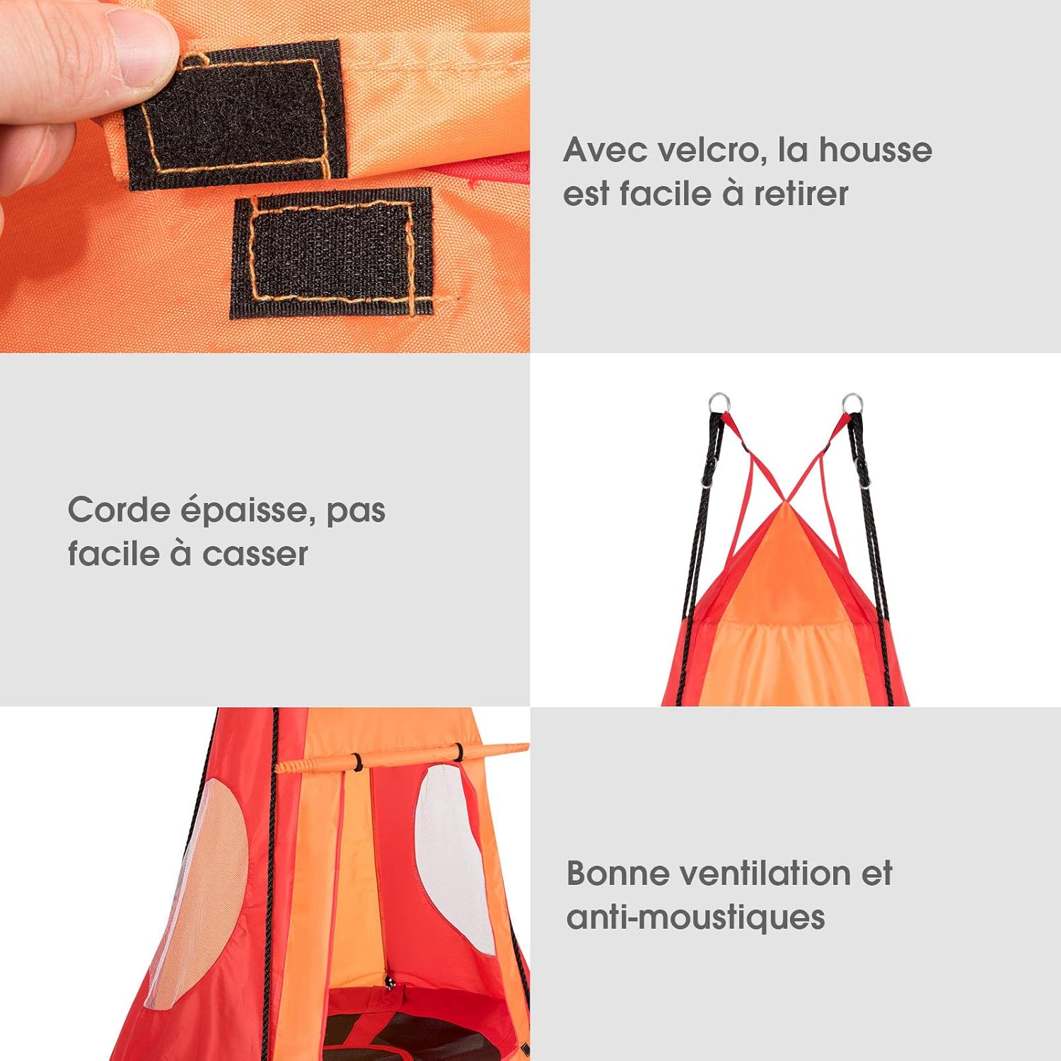 | Libellé | Balançoire nid d’oiseau avec tente amovible corde réglable en hauteur charge 150 kg orange avec tente |