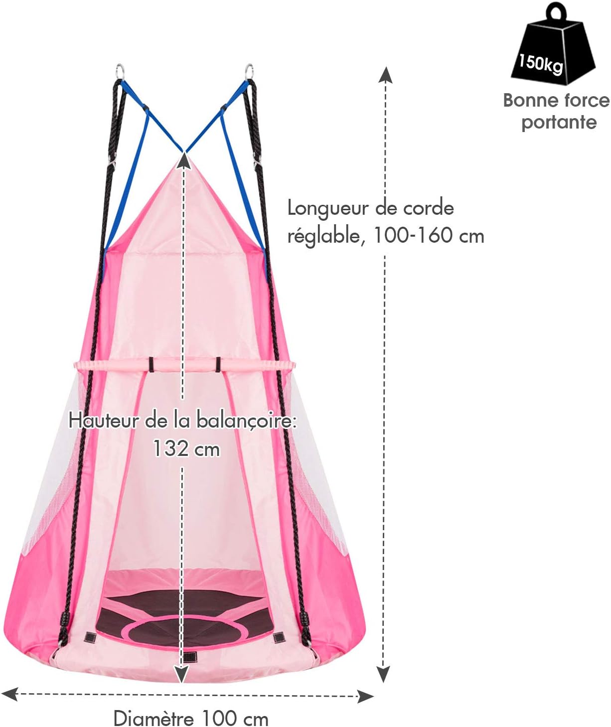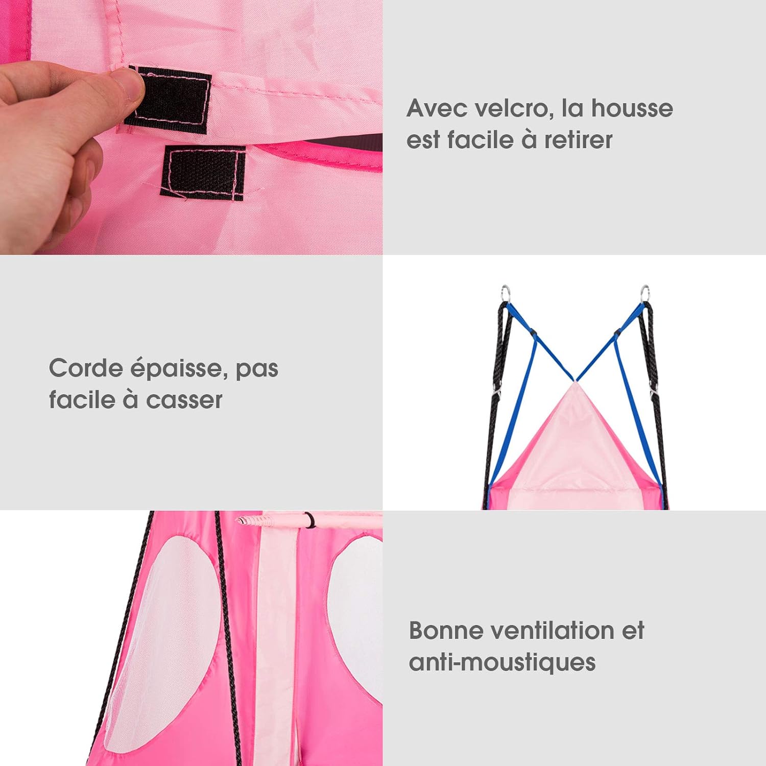 | Libellé | Balançoire nid d’oiseau avec tente amovible et corde réglable en hauteur capacité 150 kg rose avec tente |
