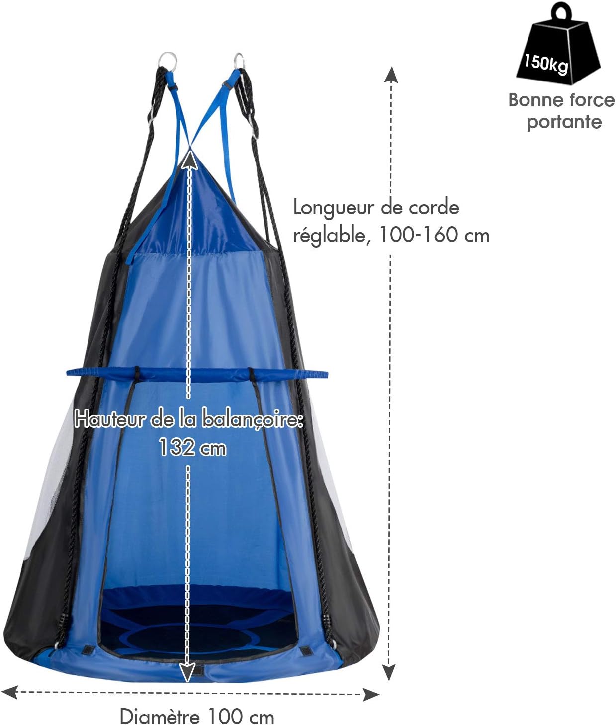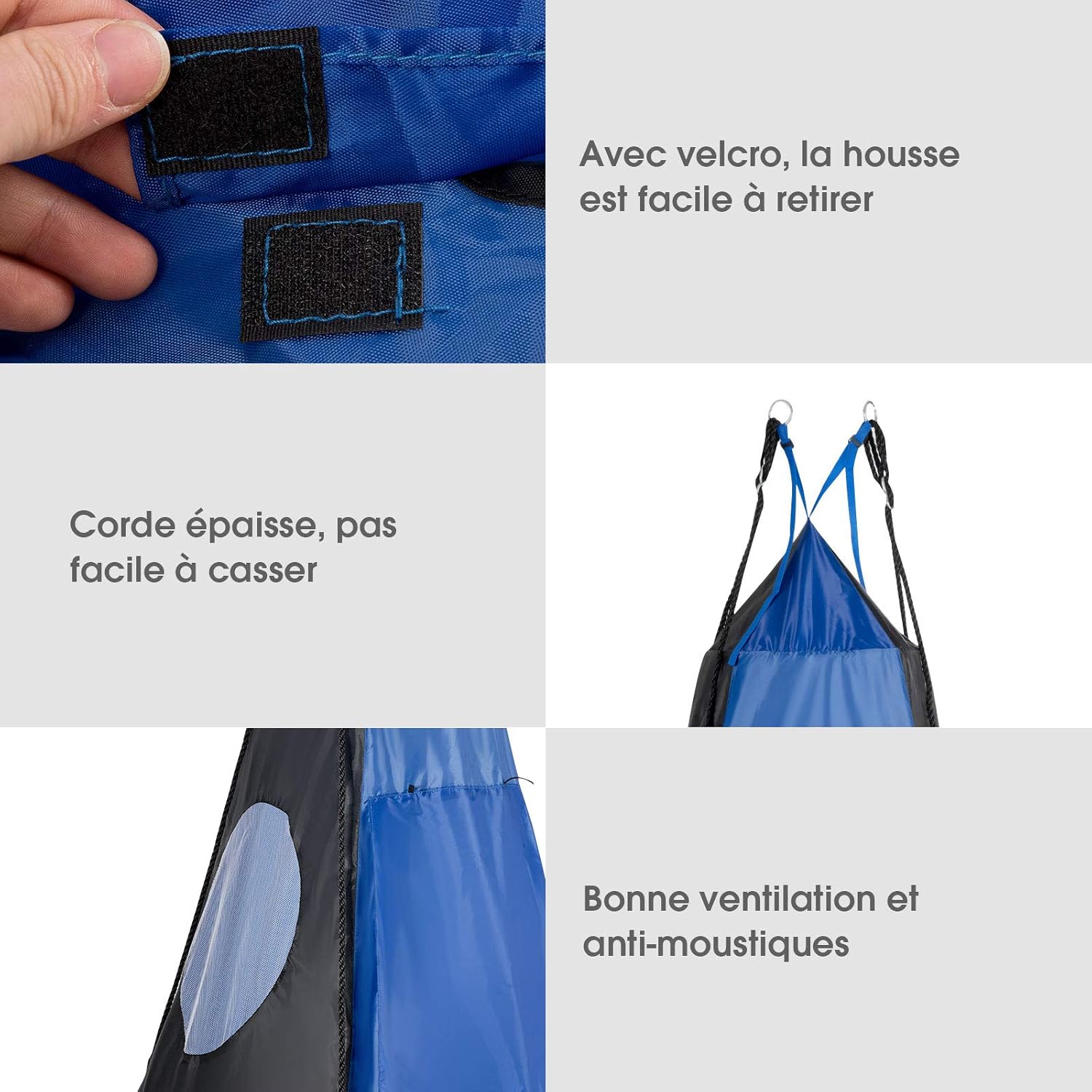 | Libellé | Balançoire nid d’oiseau avec tente amovible et corde réglable en hauteur charge 150 kg bleu avec tente |
