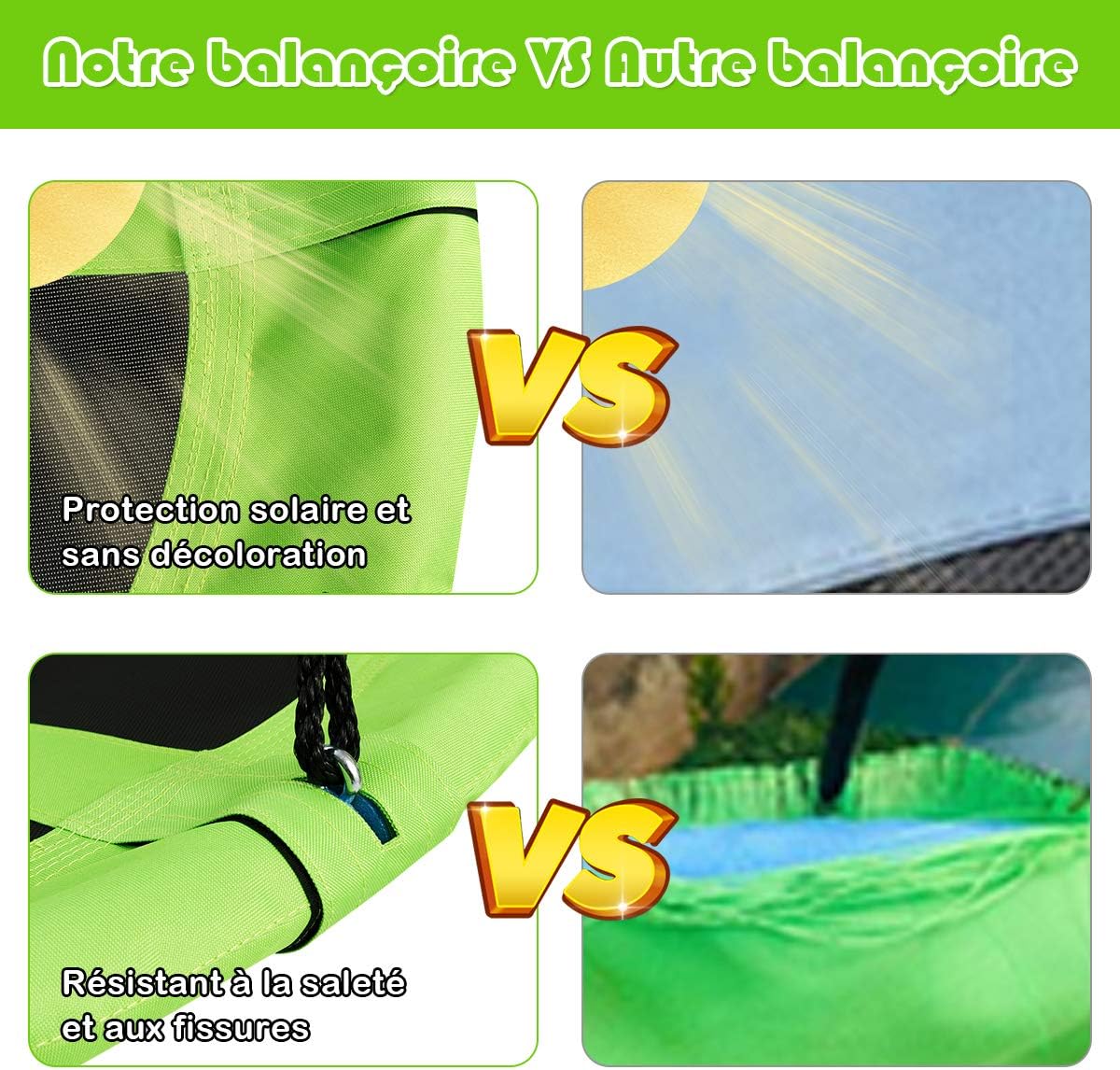 - Matériel supérieur et durable : Le siège de la balançoire est fabriquée à partir de tissu PP qui est respirant et élastique. Entouré par le tissu oxford, cette balançoire résiste bien à l’usure, aux rayures et à l’eau. Le produit est moelleux pour les enfants et est pas facile à se déformer ou à se décolorer.