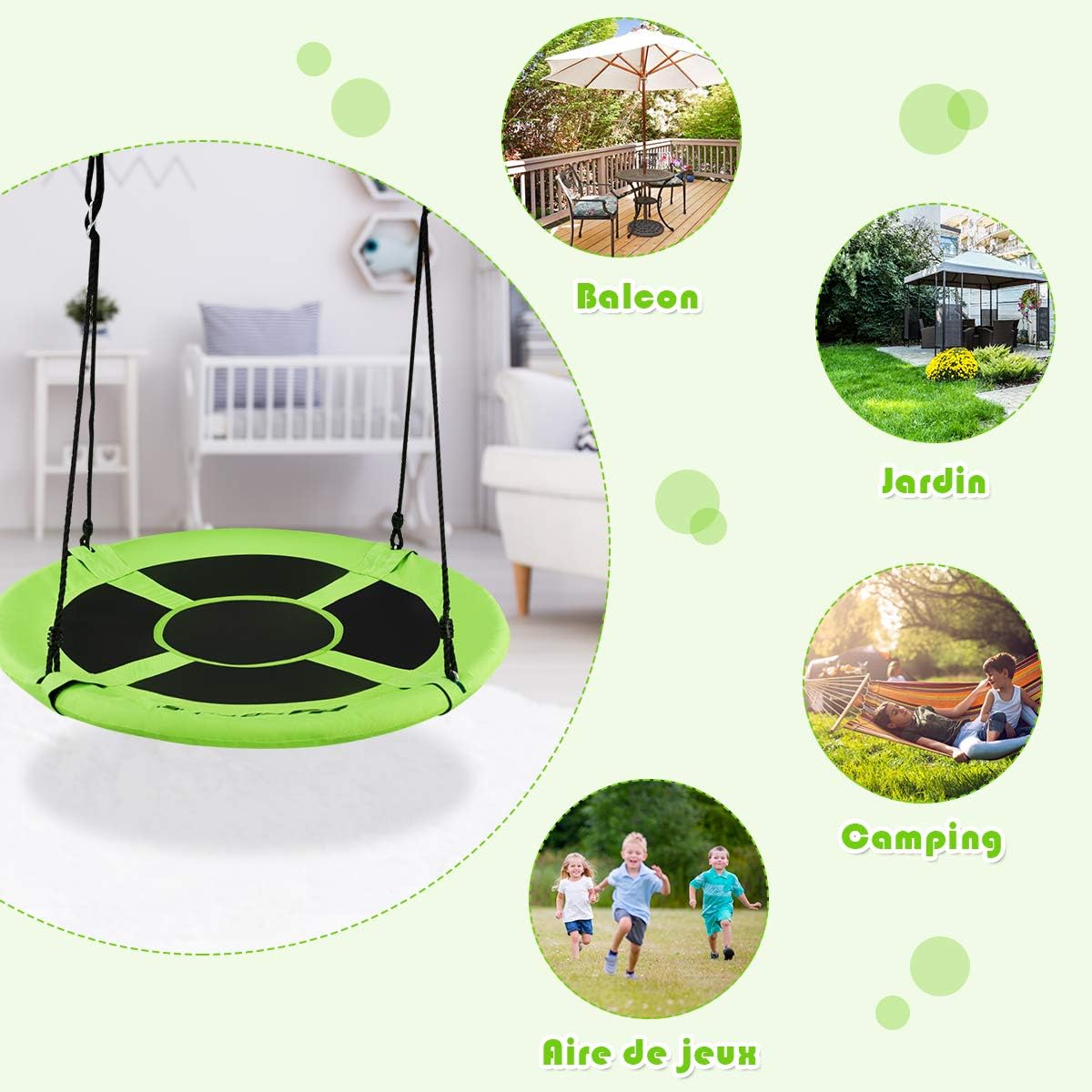 Balançoire nid d’oiseau rond balançoire de jardin en tissu oxford pp hauteur réglable charge 150kg vert