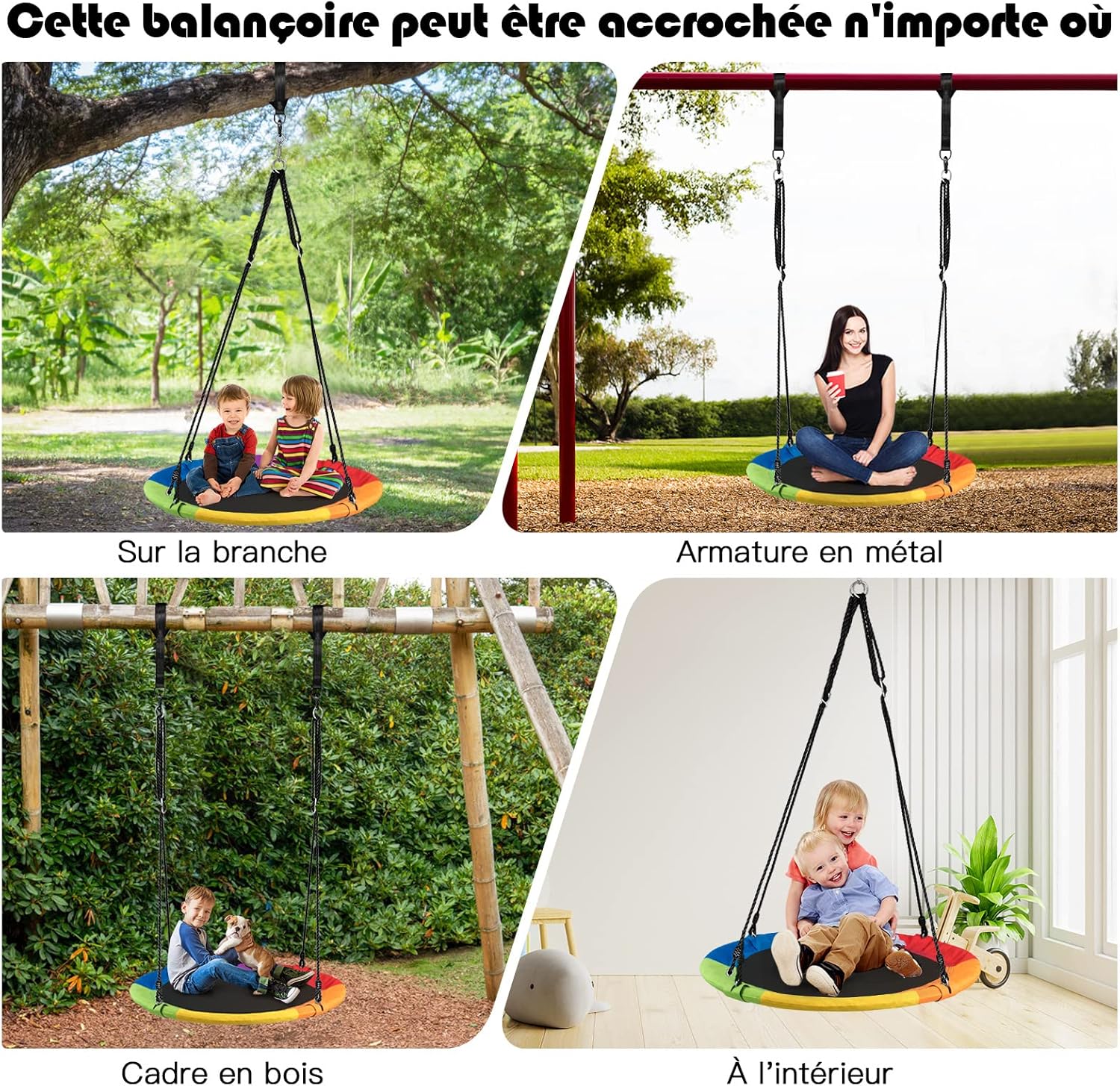- Cadeau parfait pour enfants : Notre balançoire nid avec une apparence attrayante de 3 couleurs à choix offre une large surface de Ø100cm pour que 2-3 enfants puissent s’amuser ensemble. Les enfants pourront améliorer leur équilibre et la coordination par ce jeu amusant. Ils peuvent y profiter du temps libre et joyeux.