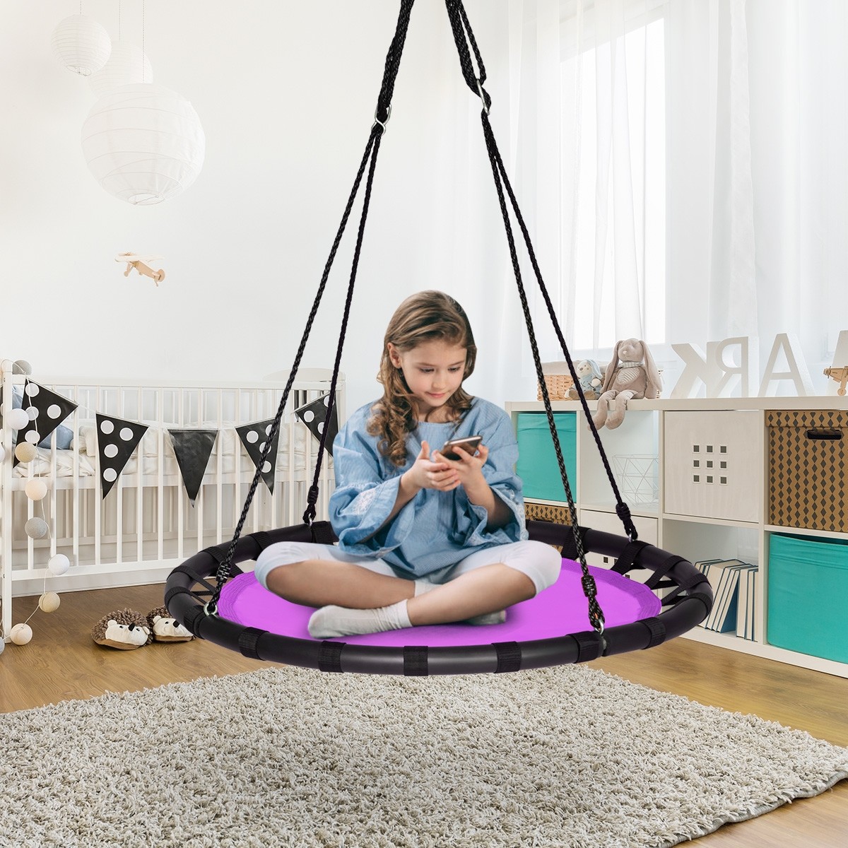 Cette balançoire nid d’oiseau est un accessoire moderne, vous pouvez l’utiliser dans la maison, dans votre jardin, au camping ou au bord de la mer pour vous amuser. Avec elle, vous profiterez du soleil, de la brise, vous pouvez aussi lire un bon livre, écouter de la musique. Cette balançoire de hauteur ajustable Le nid de la balançoire est supporté par un tube d’acier de bonne qualité et peut supporter une charge maximale d'environ 150 kg. Elle est démontable et facile à installer. Les cordes sont réglables de 100 cm à 160 cm pour s’adapter à toutes les tailles. Disponible en plusieurs coloris. Caractéristiques : Diamètre du produit : 100 cm Hauteur : Réglable de 100 cm à 160 cm Matériau : Tissu de PP + oxford + tube d’acier Poids : 3,41 kg Livraison : 1 x Balançoire nid d’oiseau 1 x Manuel de l'utilisateur Attention : Les livraisons se font en France métropolitaine à l'exception des îles qui ne sont pas reliées au continent par un pont (Corse, Ile d'Yeux, etc.). L’enfant doit l’utiliser sous la surveillance d’un adulte. Livraison en 3 à 7 jours ouvrés.