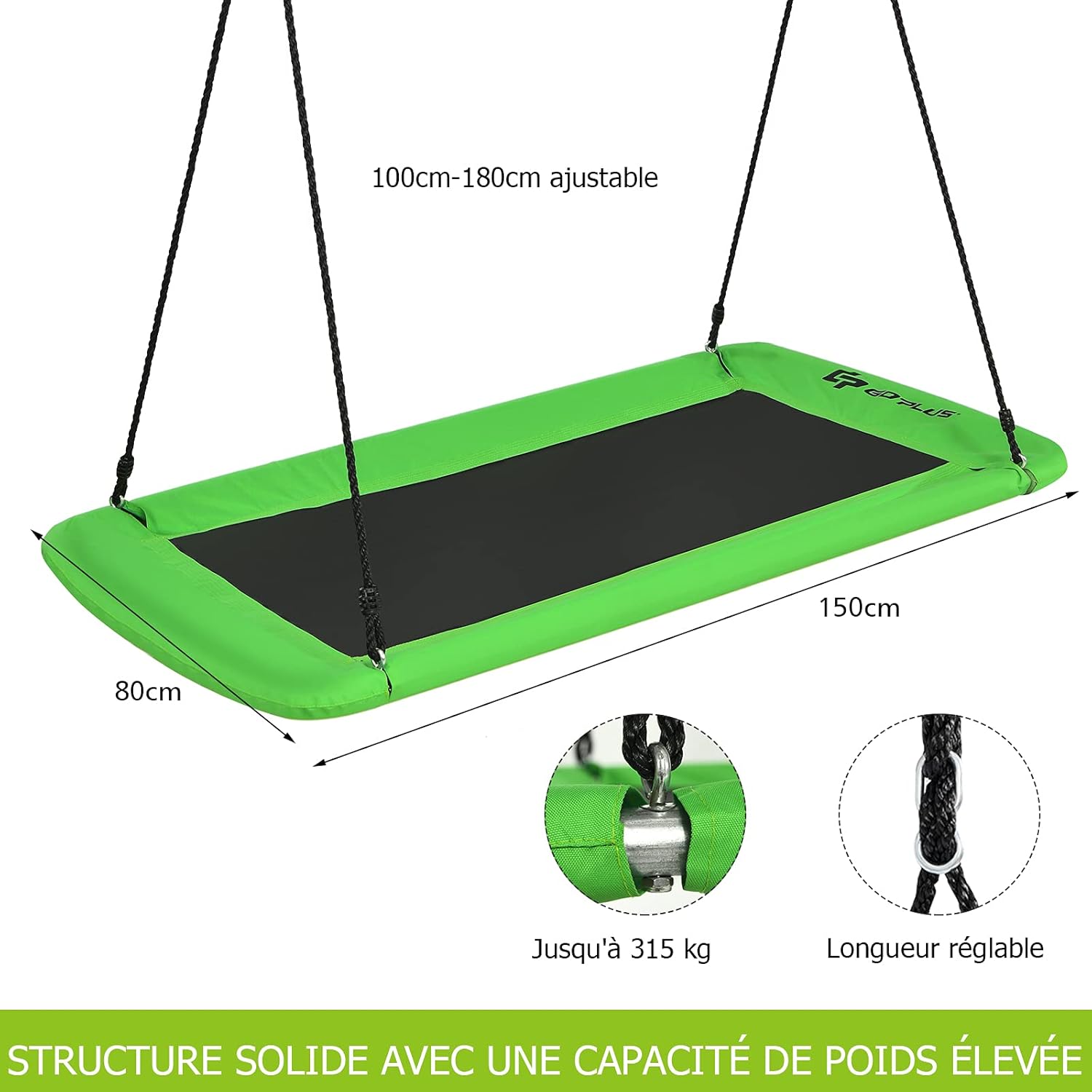 | Libellé | Balançoire rectangulaire suspendue d'extérieur, nid d’oiseaue de cordes réglables siège suspendue vert |