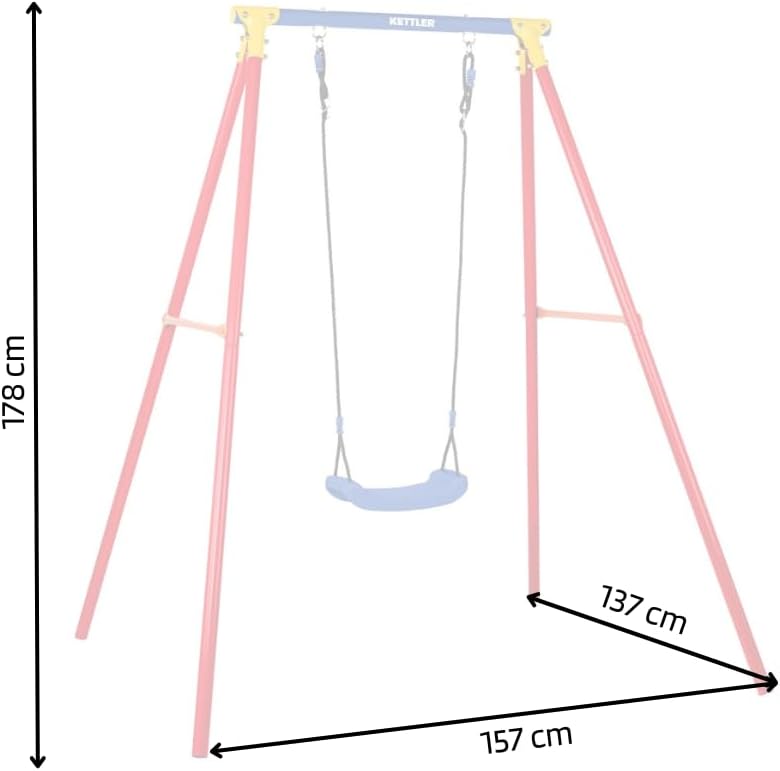 Qualité supérieure : la balançoire simple KETTLER se distingue par sa qualité et sa fiabilité maximales. La balançoire a une capacité de charge de 50 kg et convient aux enfants à partir de 3 ans. La balançoire pour enfant KETTLER Single a été testée selon les normes EN71-1, EN71-1,2, EN71-3 et répond ainsi aux normes de sécurité les plus élevées. Dimensions totales (L x l x H) : 157 x 137 x 178 cm