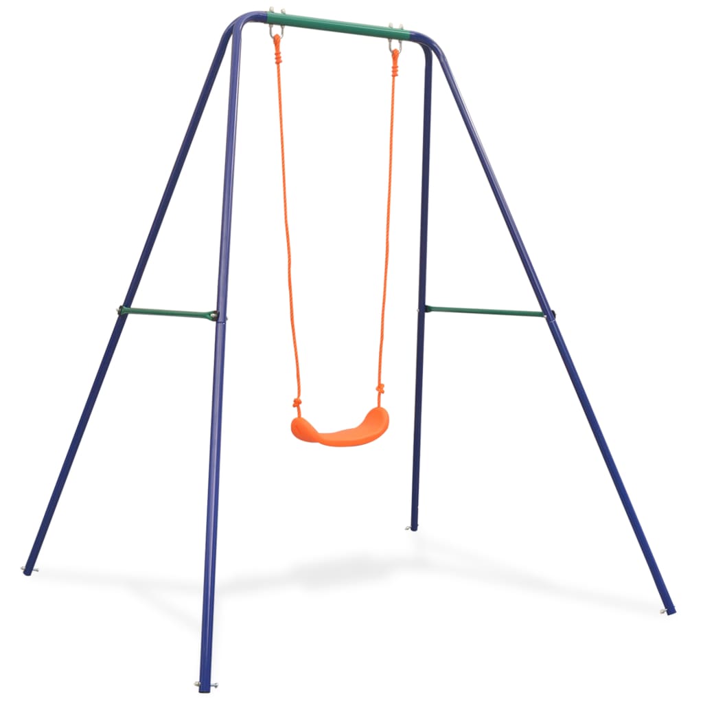 Jouer dans cette balançoire deviendra l'activité en plein air préférée de vos enfants ! Grâce à son cadre en acier robuste et au siège en plastique, la balançoire est extrêmement durable et résistante aux intempéries, alors qu'elle est aussi facile à assembler. La balançoire est fermement fixée à la barre transversale robuste du cadre en A avec des boulons, des crochets et des cordes robustes. Les broches de sol et tous les accessoires d'installation nécessaires sont inclus.