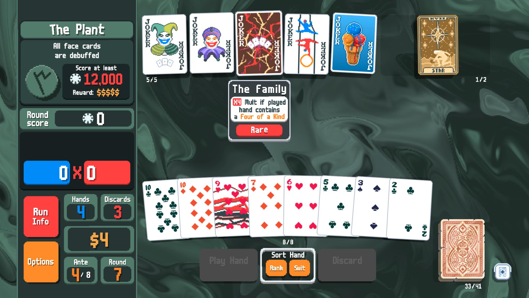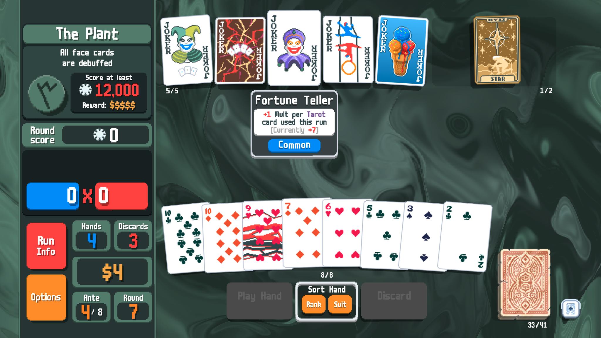 Balatro est un jeu de deckbuilding roguelike basé sur du poker qui met en avant les puissantes synergies pour gagner gros. Un jeu de poker roguelike. Balatro est un jeu de deckbuilding prenant où vous jouez des combinaisons de poker illégales, découvrez des jokers révolutionnaires et déclenchez des combos aussi palpitants que dévastateurs. Des possibilités sans fin Combinez des mains de poker avec des jokers uniques pour créer une variété de synergies et de decks. Gagnez assez de jetons pour venir à bout des mises, tout en découvrant des bonus de main et des decks secrets. Il vous faudra tous les avantages possibles pour atteindre l'ultime blind, venir à bout du dernier ante et remporter la victoire. L'expérience de poker roguelike ultime. Des possibilités sans fin : chaque bonus, défausse et joker peut grandement altérer le déroulement de votre partie. Un mode campagne exhaustif avec 5 difficultés, ainsi qu'un mode difficile, un mode quotidien et un mode classé.