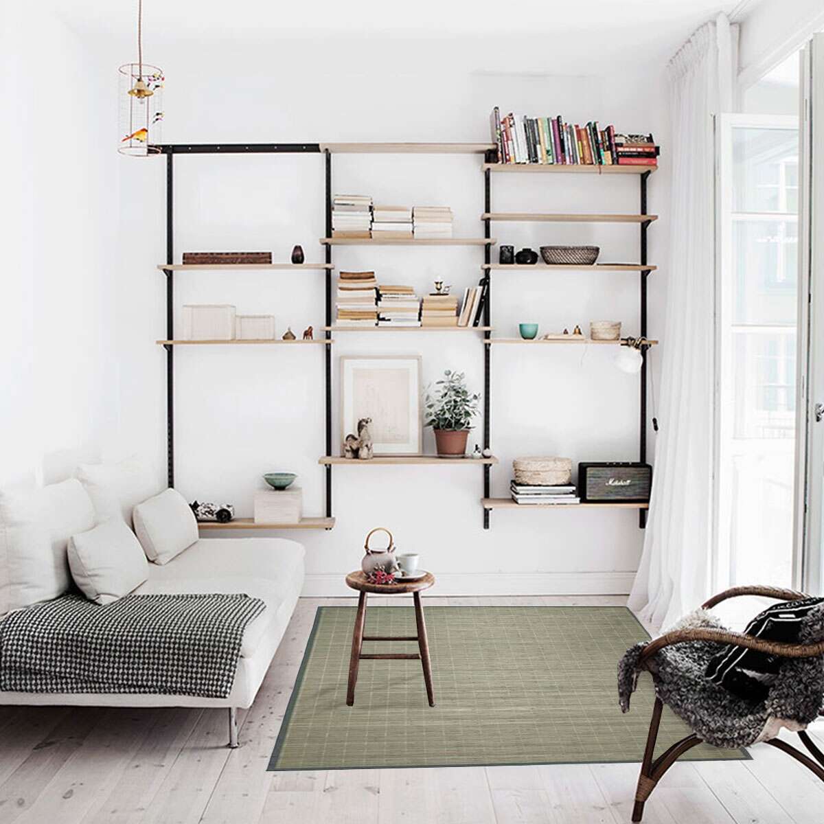 Apportez une note naturelle et contemporaine à votre intérieur avec ce tapis en bambou gris vert. Sa couleur douce et subtile s'accorde parfaitement avec des décors épurés ou végétaux.