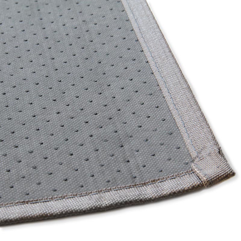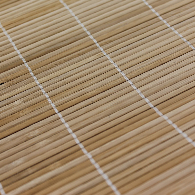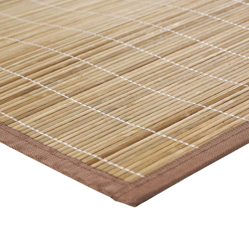Fines lattes de bambou à envers antidérapant et bordées d'une ganse en coton teintée marron.