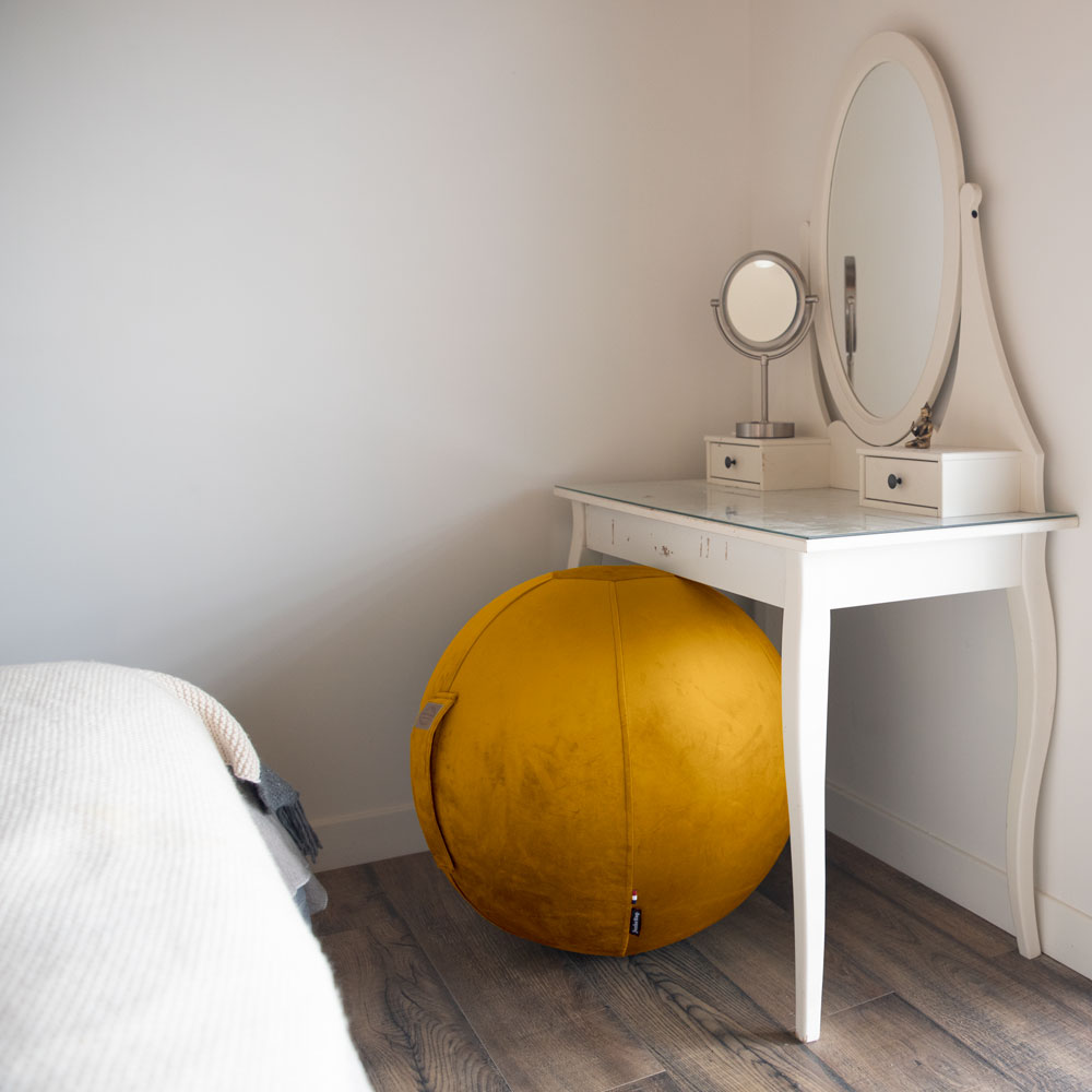 14500v-67 - balle de gym gonflable - curry - Vous connaissez déjà les vertus de la balle de gym lors de vos exercices de fitness, mais savez vous qu'elle peut également vous servir comme siège de bureau ?