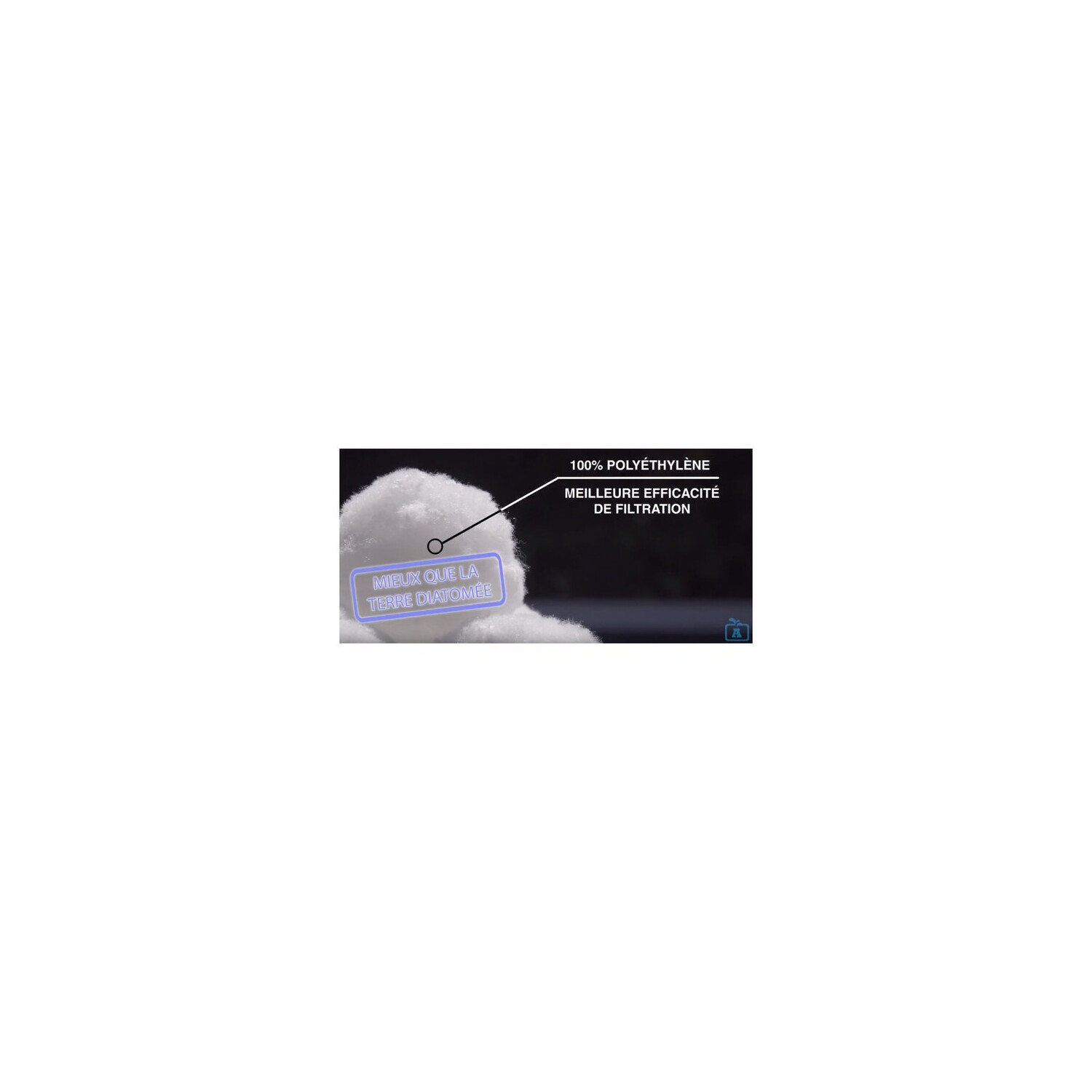 Balles filtrantes aqualoon uniquement pour filtres à sable équipés d'un diffuseur 4m³/h. plus avantageuse et beaucoup plus légère que les médias filtrants existants, aqualoon est la nouvelle façon de purifier l'eau. elle se différencie de tous autres médias filtrants grâce à sa finesse de filtration exclusive d'un micron (1µ), là où le sable quartz 40µ, la cartouche 25µ, le diatomée, le verre recyclé = 5µ qui laissent des petites impuretés apparentes. aqualoon se présente sous forme de petites boules fabriquées de 100 % polyéthylène, dans un filet de brins entrelacés, afin d'éviter que les boules s'effilochent pendant leurs utilisations. en même temps ce procédé étend leur durée de vie et l'efficacité. aqualoon = 100 % recyclable donc écologique. quantité requise : - pour un filtre à sable de 4m³/h - 1 carton de 700g est nécessaire. avantages : - économie d'énergie - capacité élevée de saleté - Évite du sable dans la piscine - très faible augmentation de pression - aucun durcissement - excellent résultat en filtration - fréquence réduite de contre-lavage - longévité extrême - recyclable, non toxique - extra légère pour manutention aisée test de comparaison 700 gr aqualoon = 25 kg de sable quartz installation l'utilisation d'aqualoon dans un kit de filtration est similaire à l'utilisation traditionnelle du sable. 1) enlever le couvercle du réservoir 2) vider le réservoir de tout résidu et nettoyer le entièrement 3) remplir le réservoir avec aqualoon 4) remettre le couvercle 5) démarrer la pompe de filtration