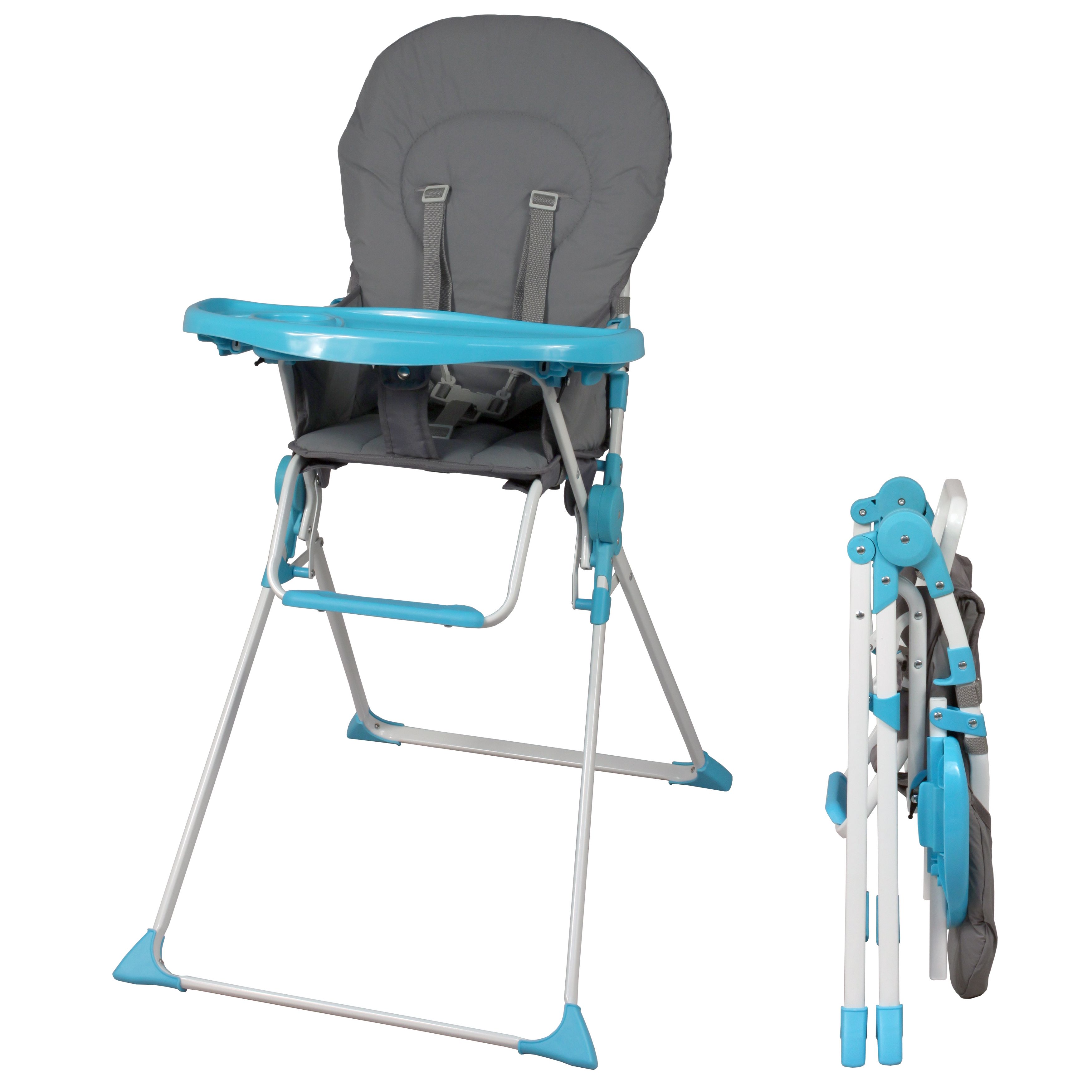 Bambisol Chaise Haute Bébé Pliable Fixe | Ultra Compacte et Légère | Gris Turquoise