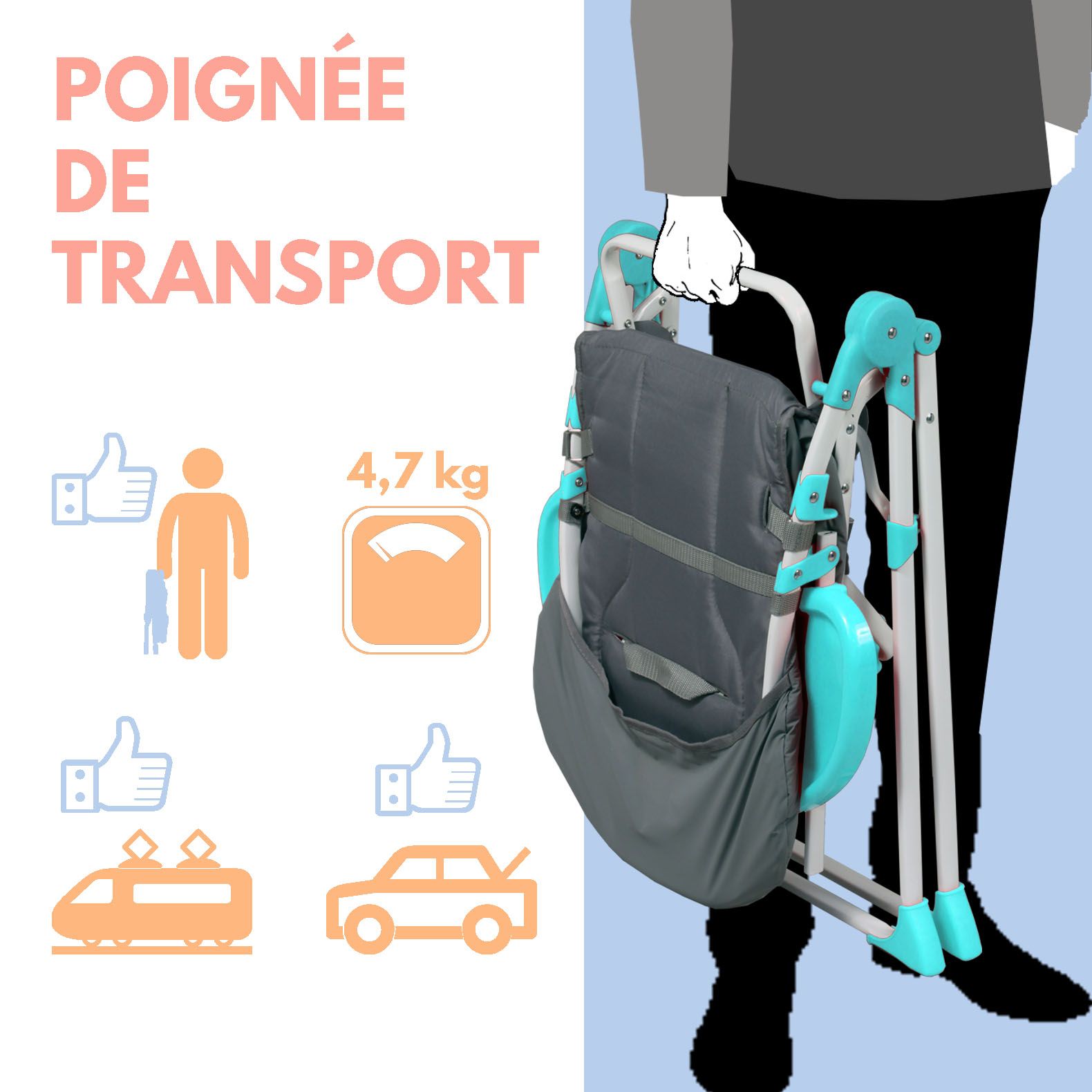 - Poignée de transport pour l'emmener partout grâce à son poids plume