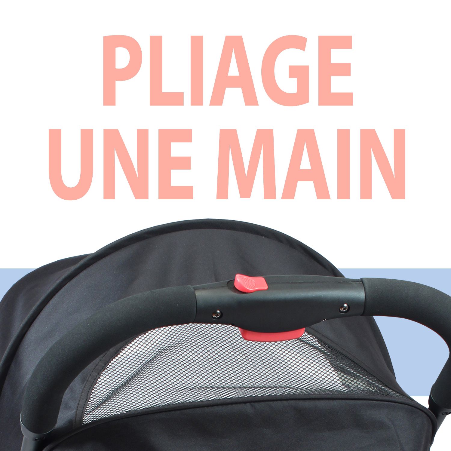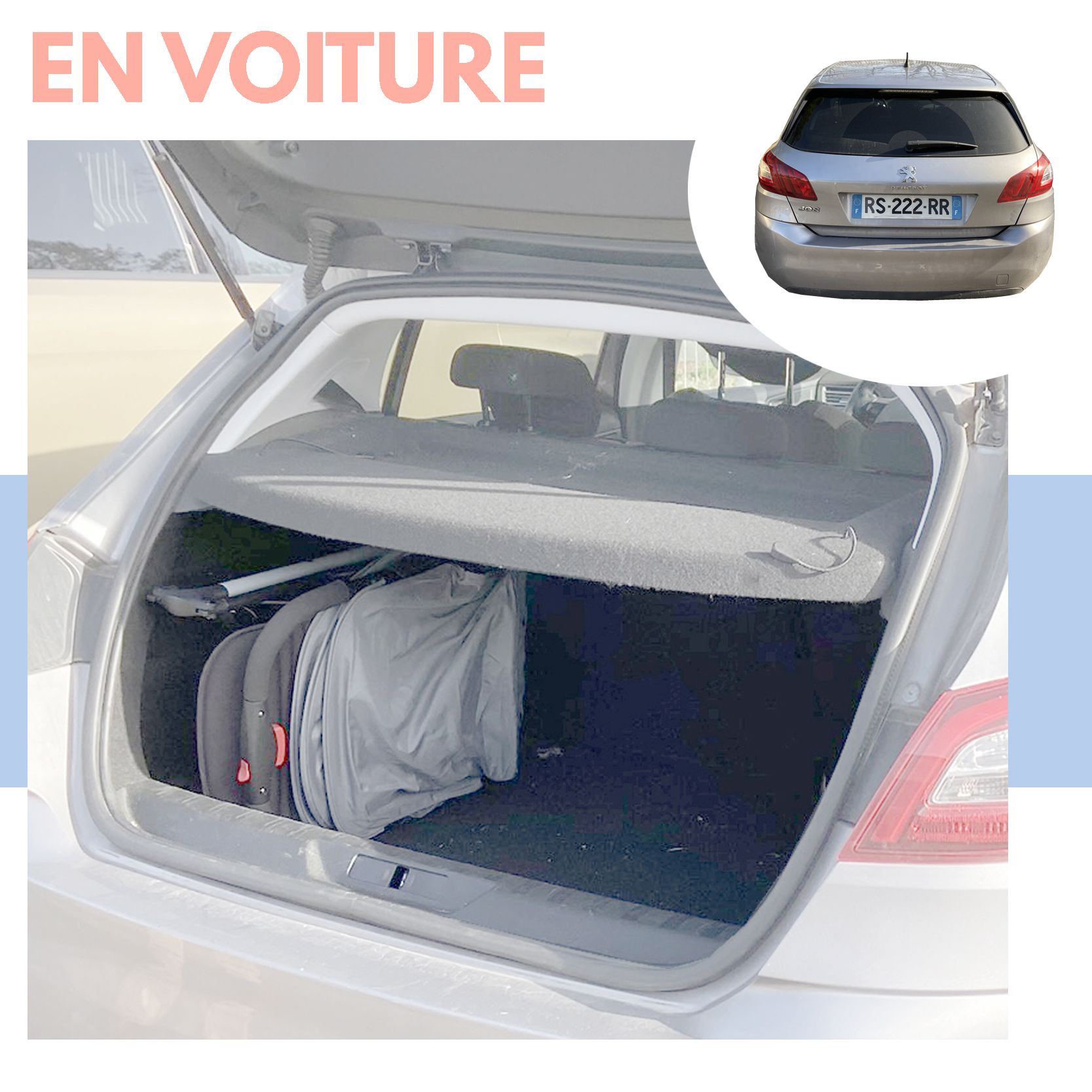 Le pliage de cette poussette est ultra-compact ce qui permet de la ranger très facilement dans le coffre d'une voiture, dans le train, ou même dans l'avion (selon conditions des compagnies aériennes)