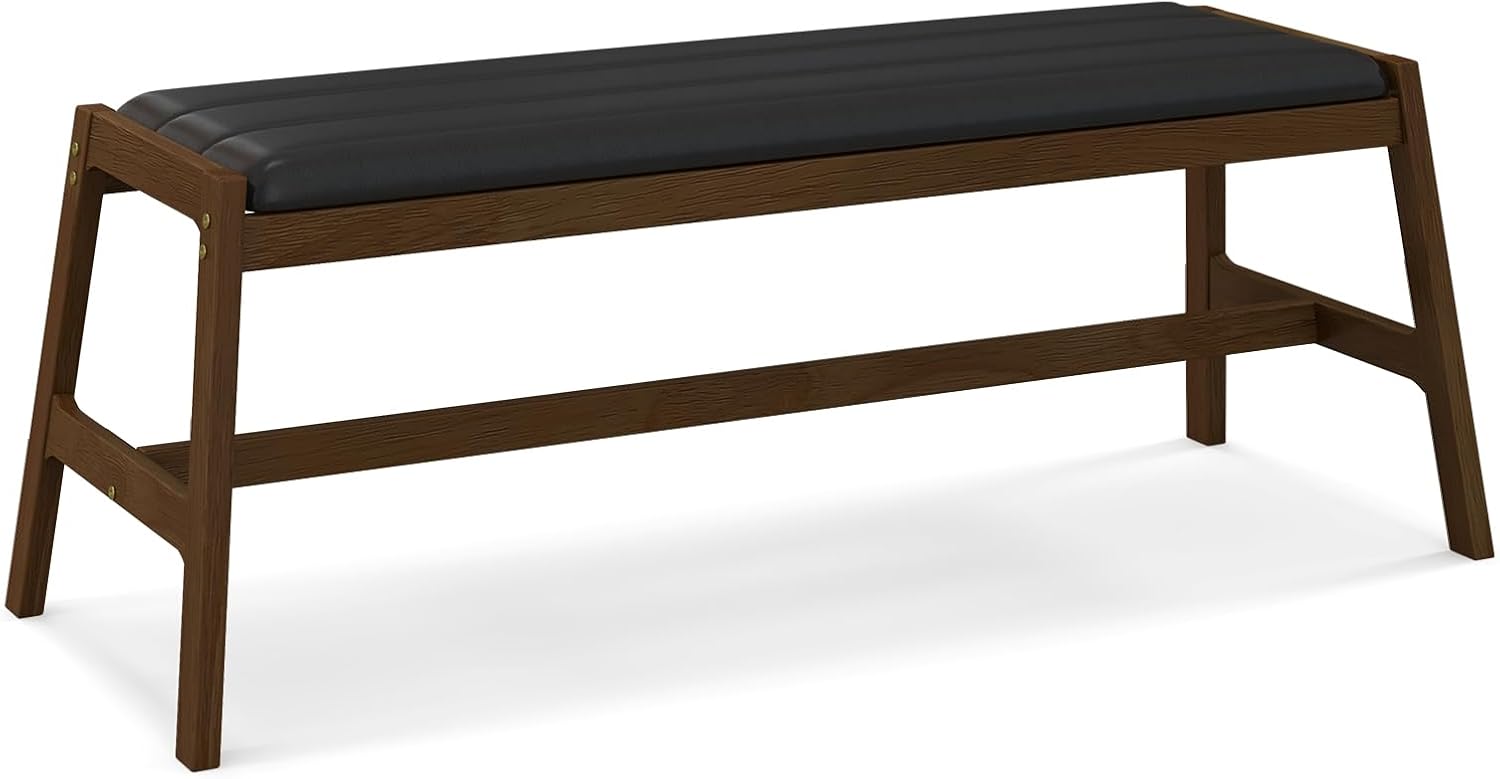 Le banc de salle à manger a une longueur de 127 cm, ce qui peut accueillir confortablement 2 personnes. Le banc en bois polyvalent peut servir de siège confortable dans votre maison, couloir ou bureau. Par la nature, le banc de lit avec cadre en bois de caoutchouc massif garantit des années de service fiable. En outre, le cadre renforcé en forme de H augmente encore la robustesse. Le banc de table confortable dispose d'un coussin rembourré en mousse enveloppé de cuir synthétique PVC, offrant une expérience d'assise somptueuse. En outre, la fusion d'une finition chaude en bois de noyer avec des revêtements en cuir synthétique noir brillant dégage une élégance intemporelle qui s'harmonise sans effort avec différents thèmes décoratifs.