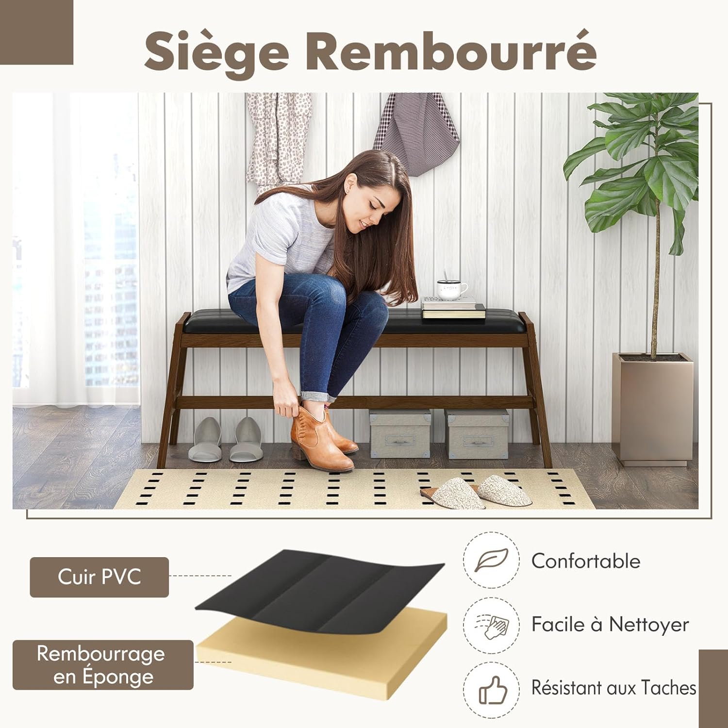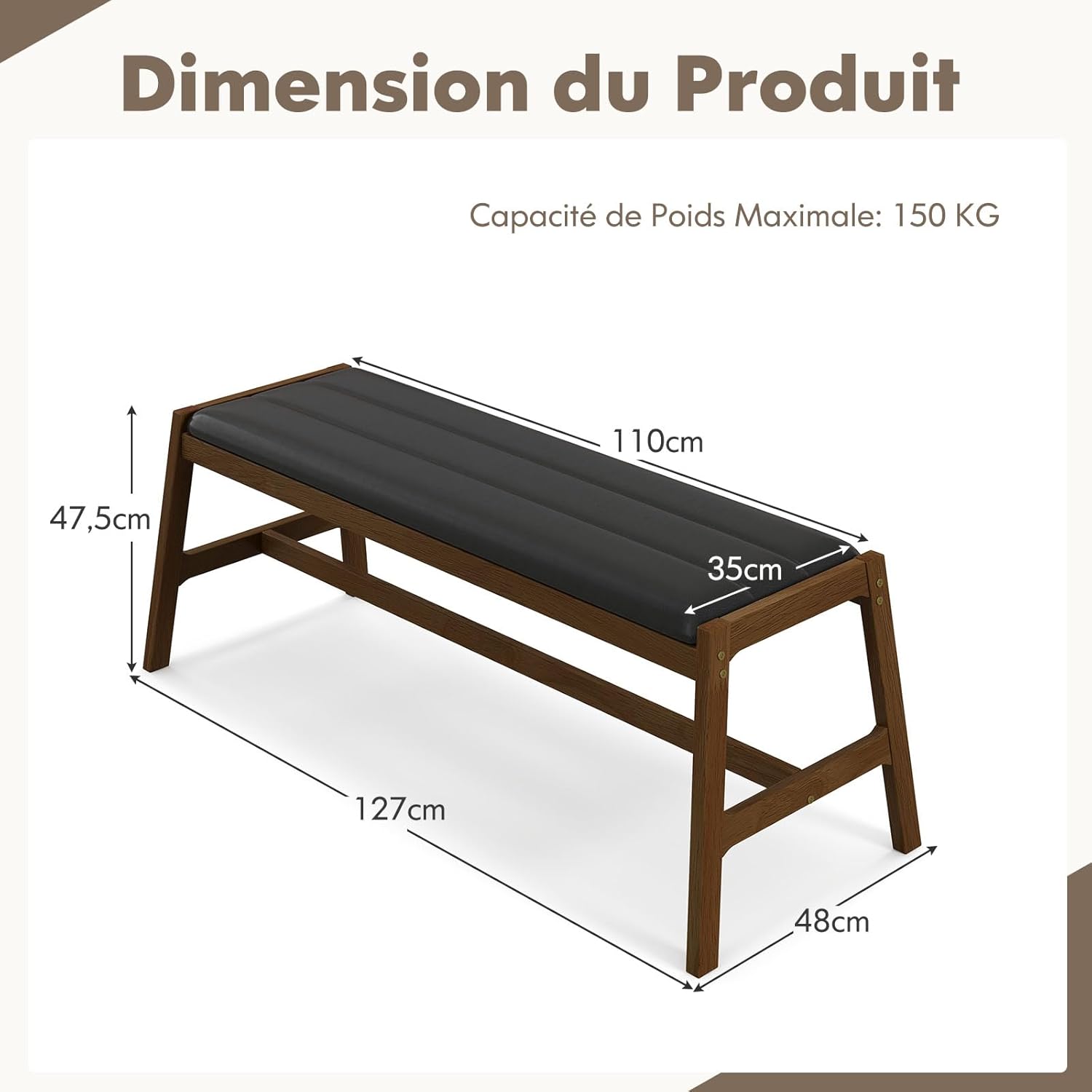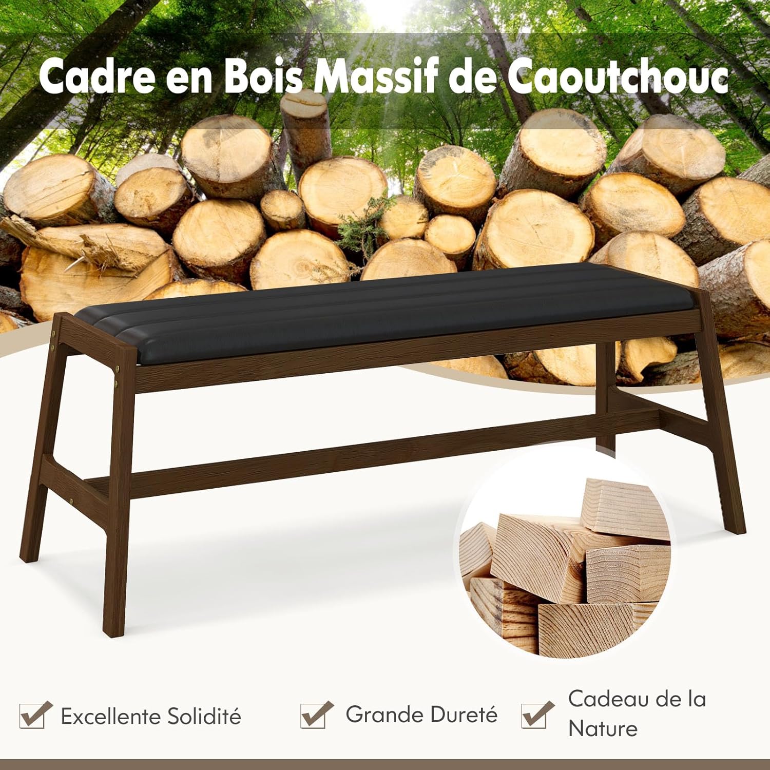 | Libellé | Banc à manger en bois massif avec siège en PVC et mousse, Charge 150kg, pour salle à manger cuisine salon |