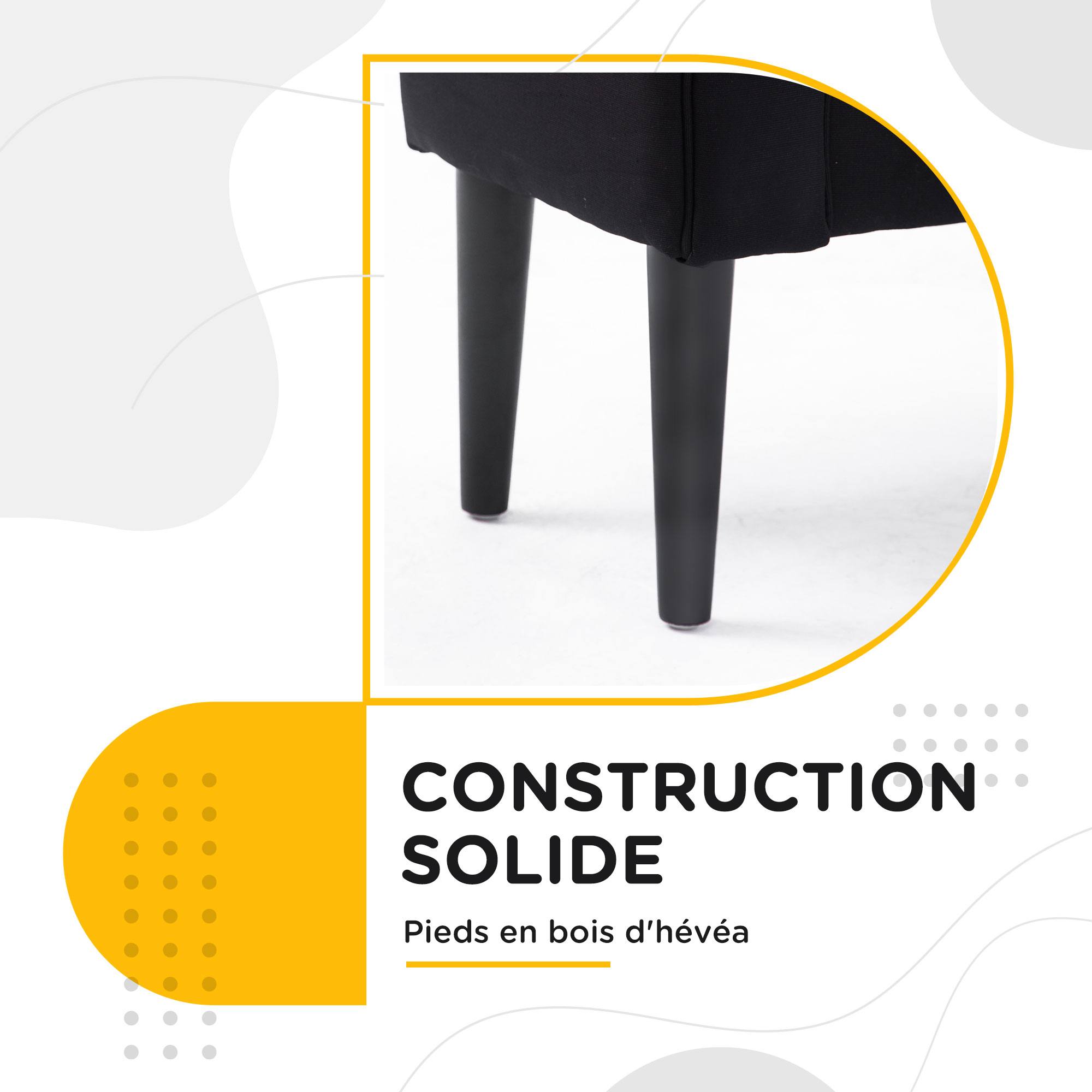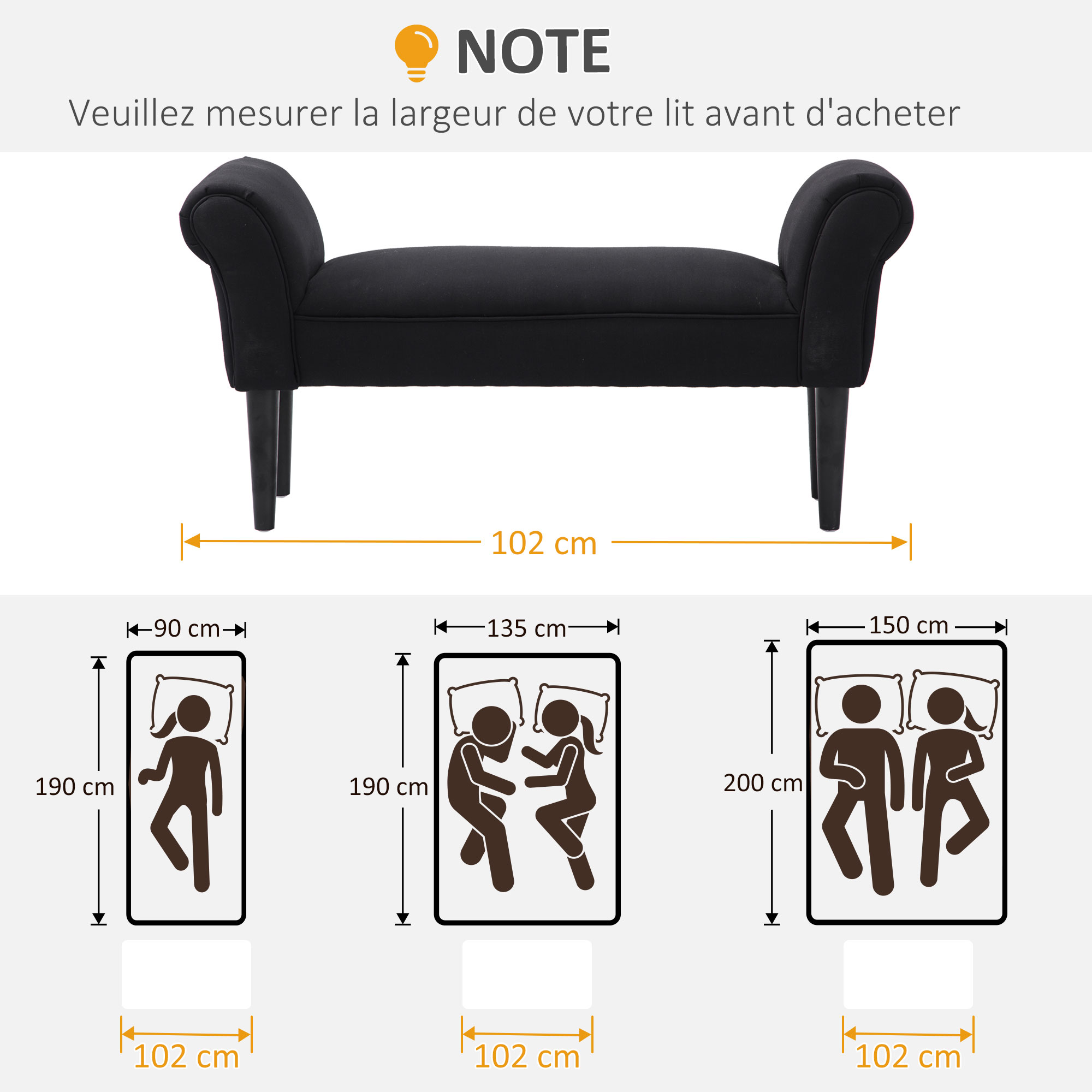 Banc banquette design contemporain accoudoirs courbés grand confort 102L x 31l x 51H cm noir