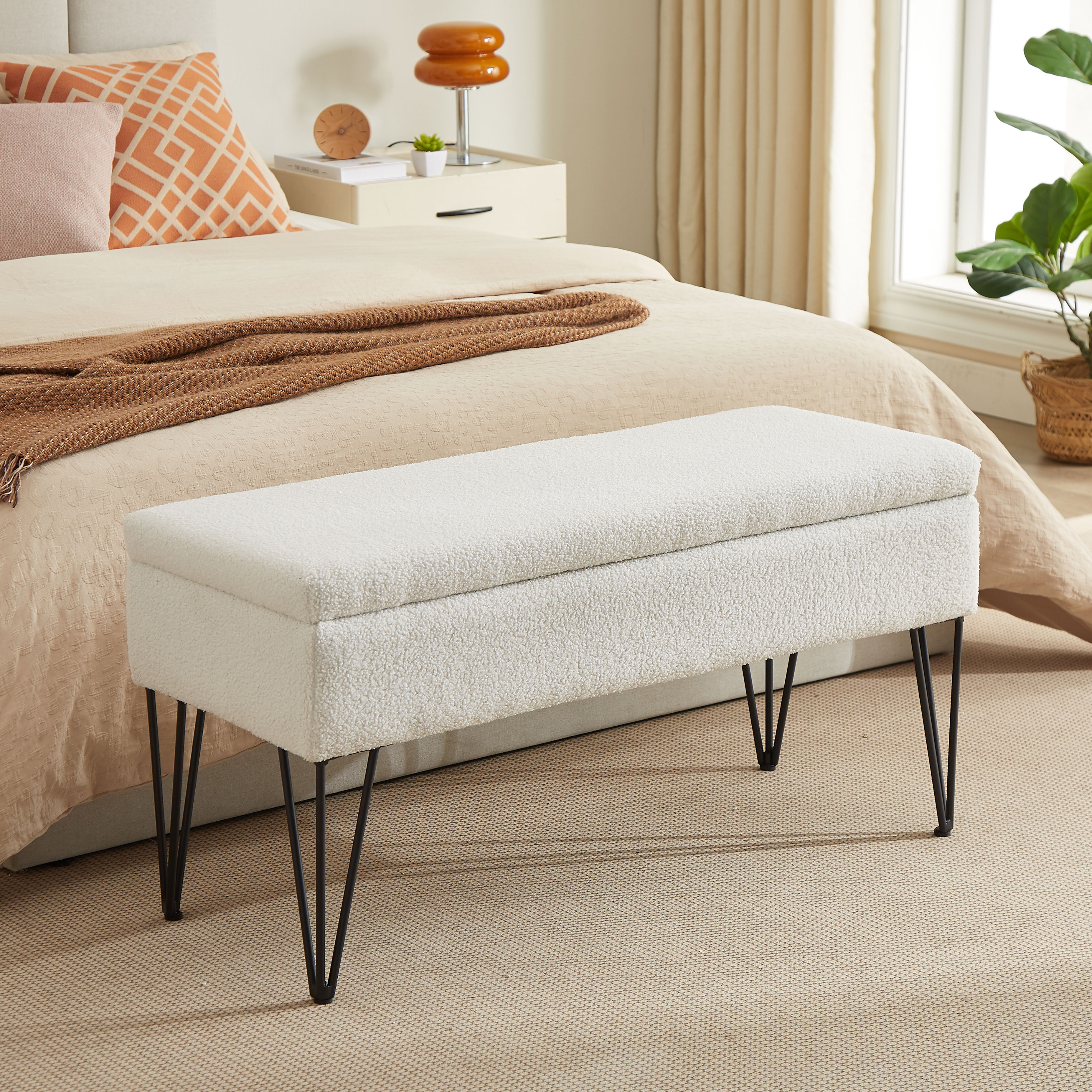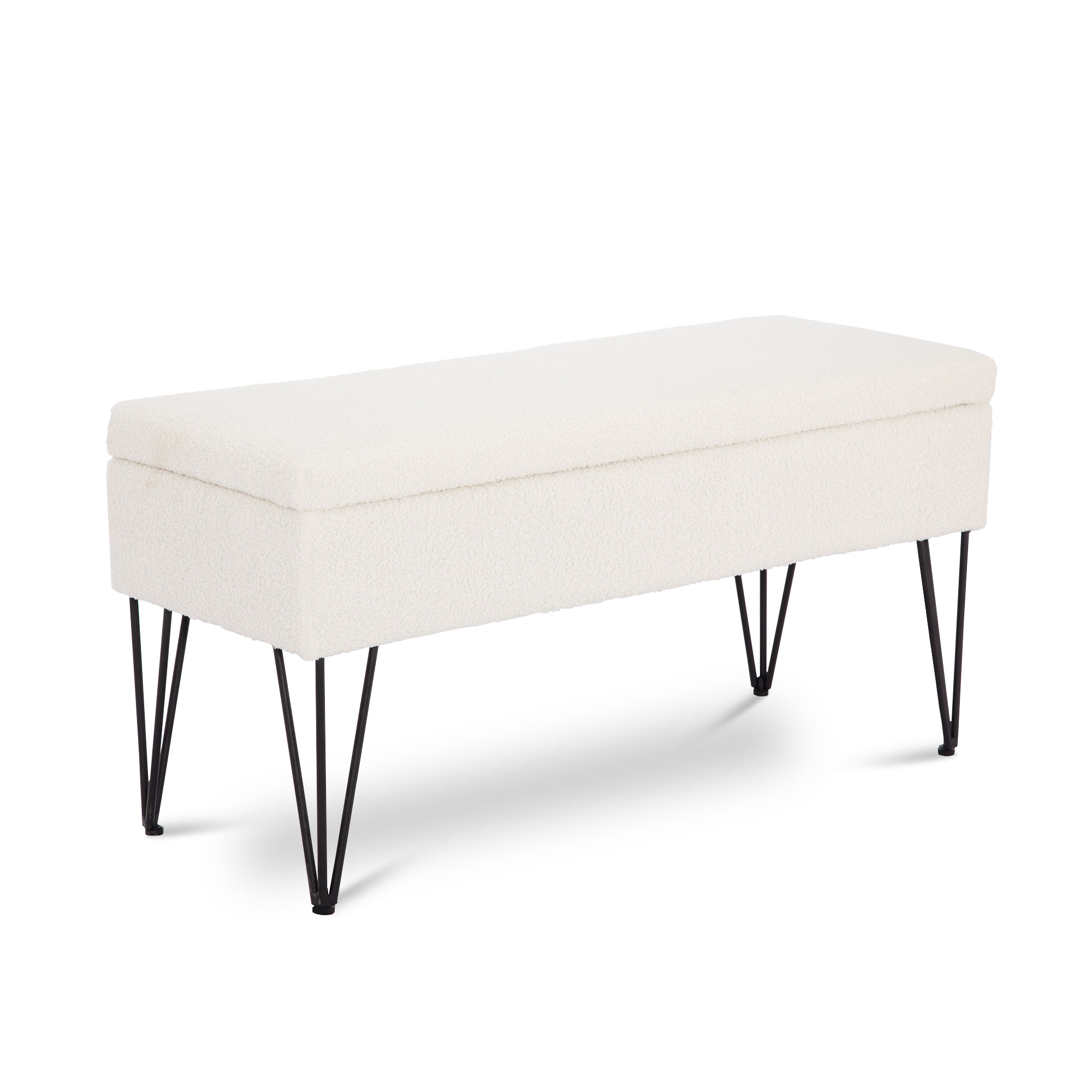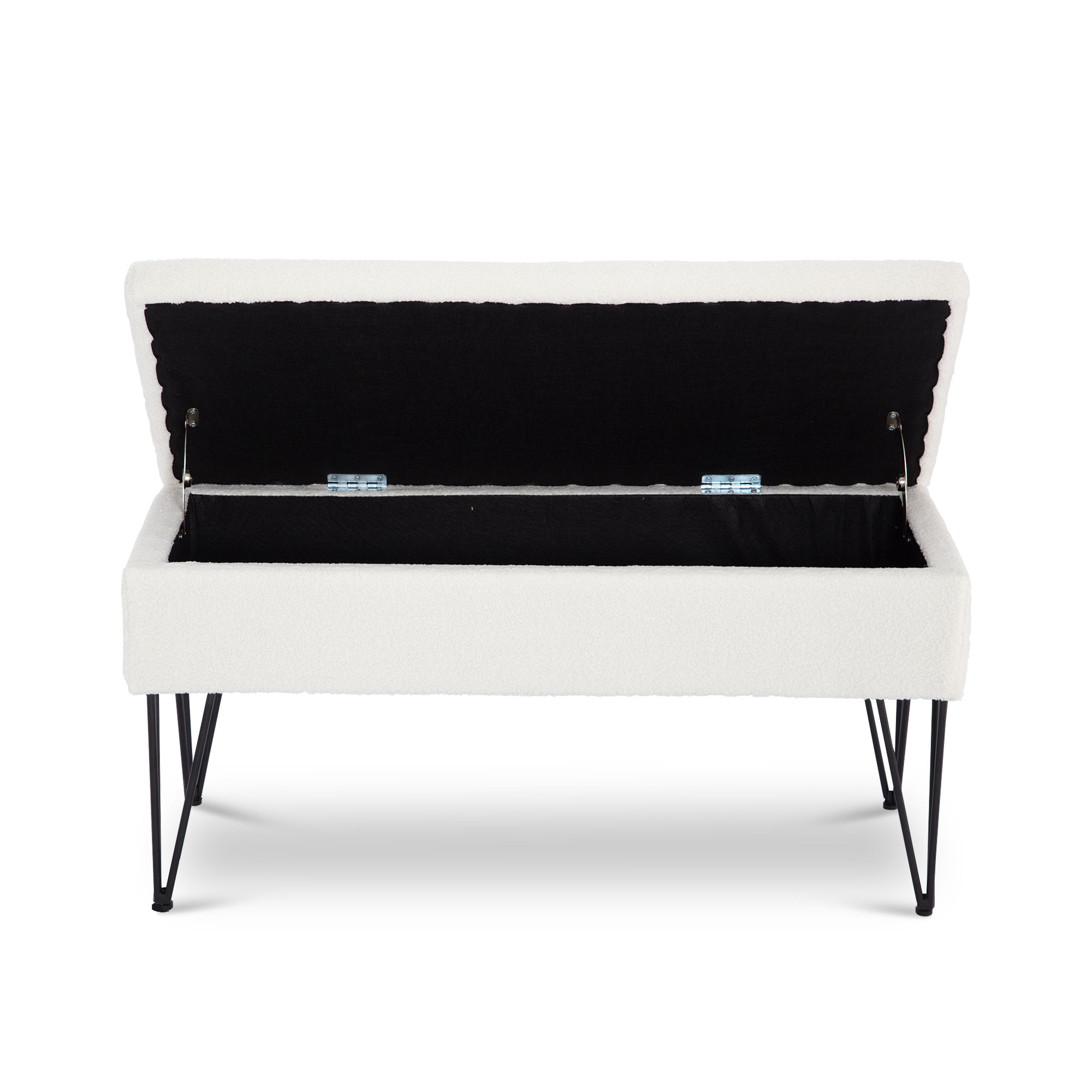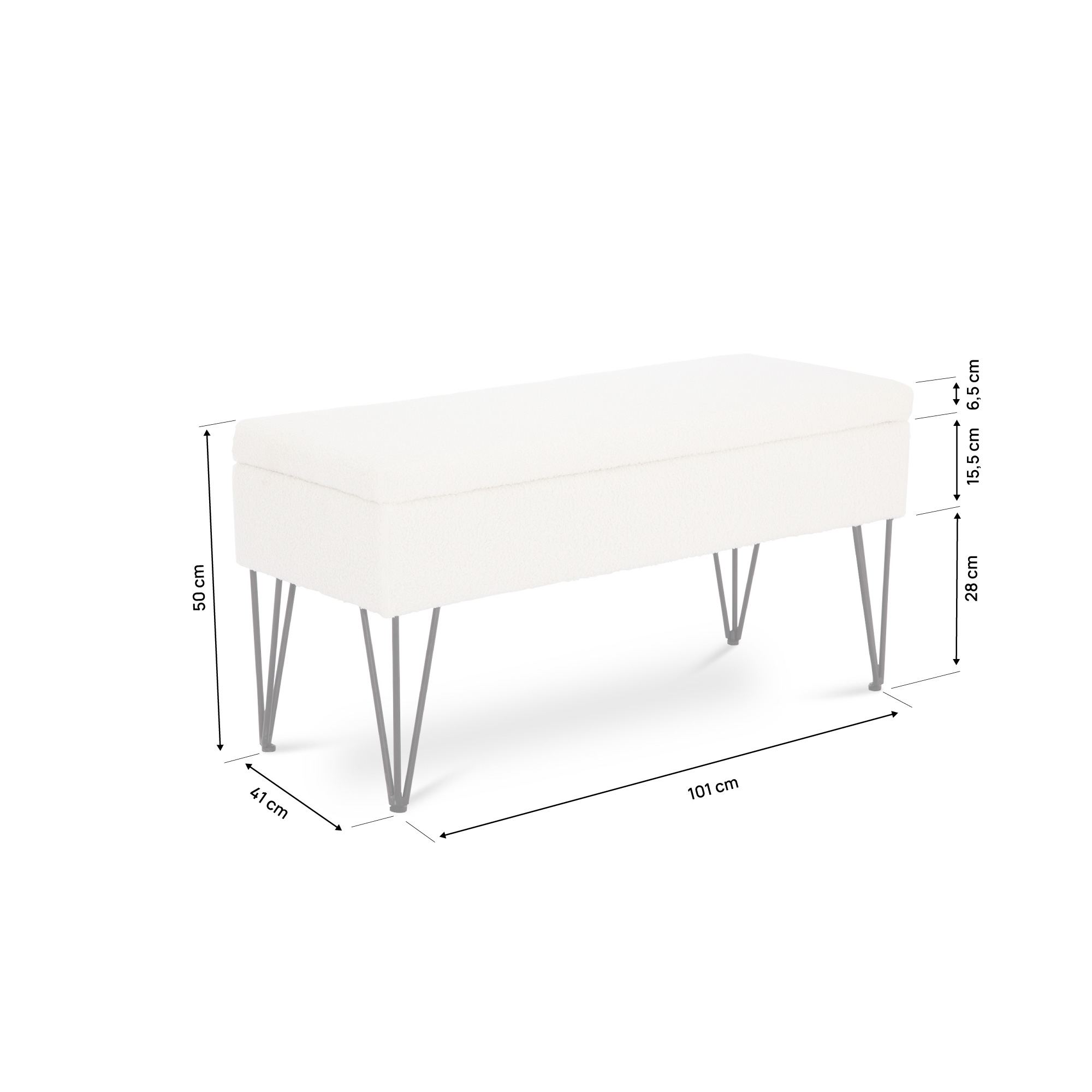Élégance pure du tissu bouclé blanc Pieds épingles, la touche design parfaite Avec espace de rangement |