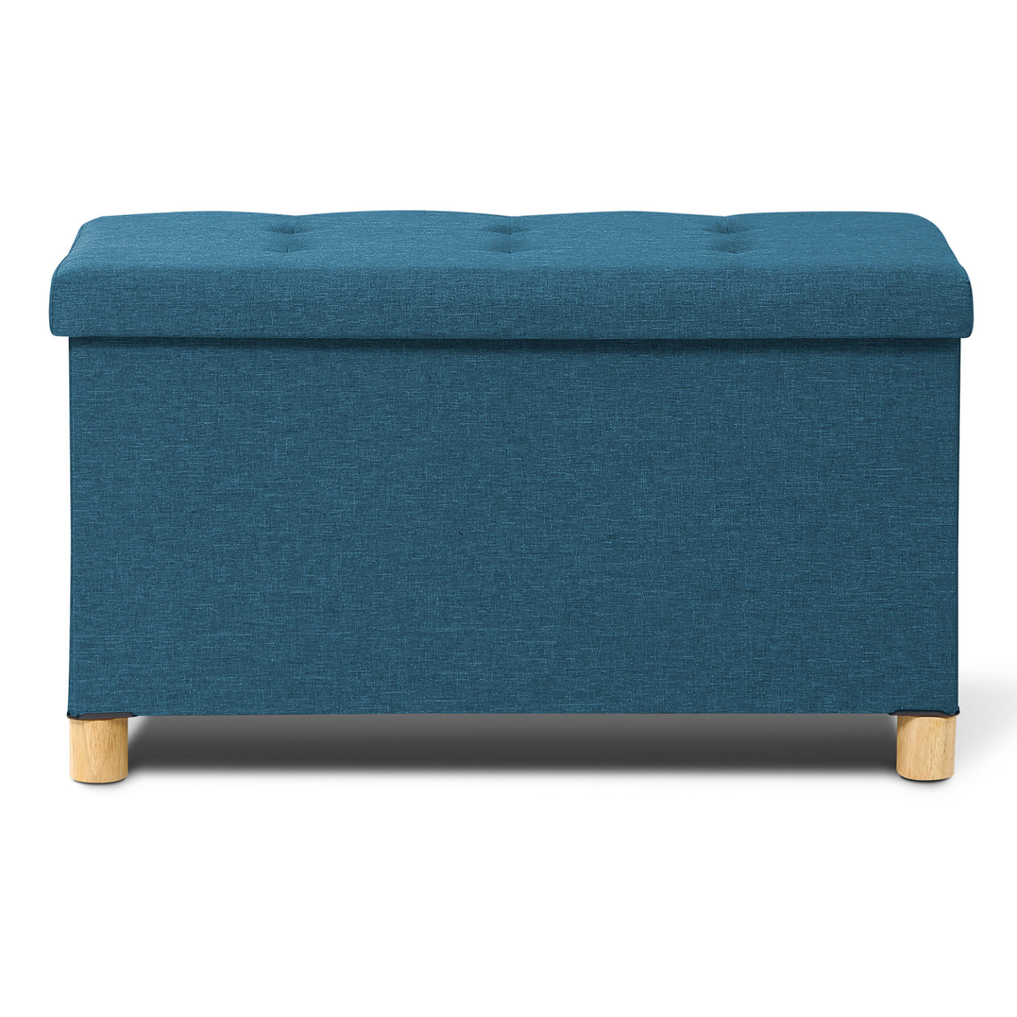 Banc coffre de rangement sur pieds 76 cm en tissu bleu canard