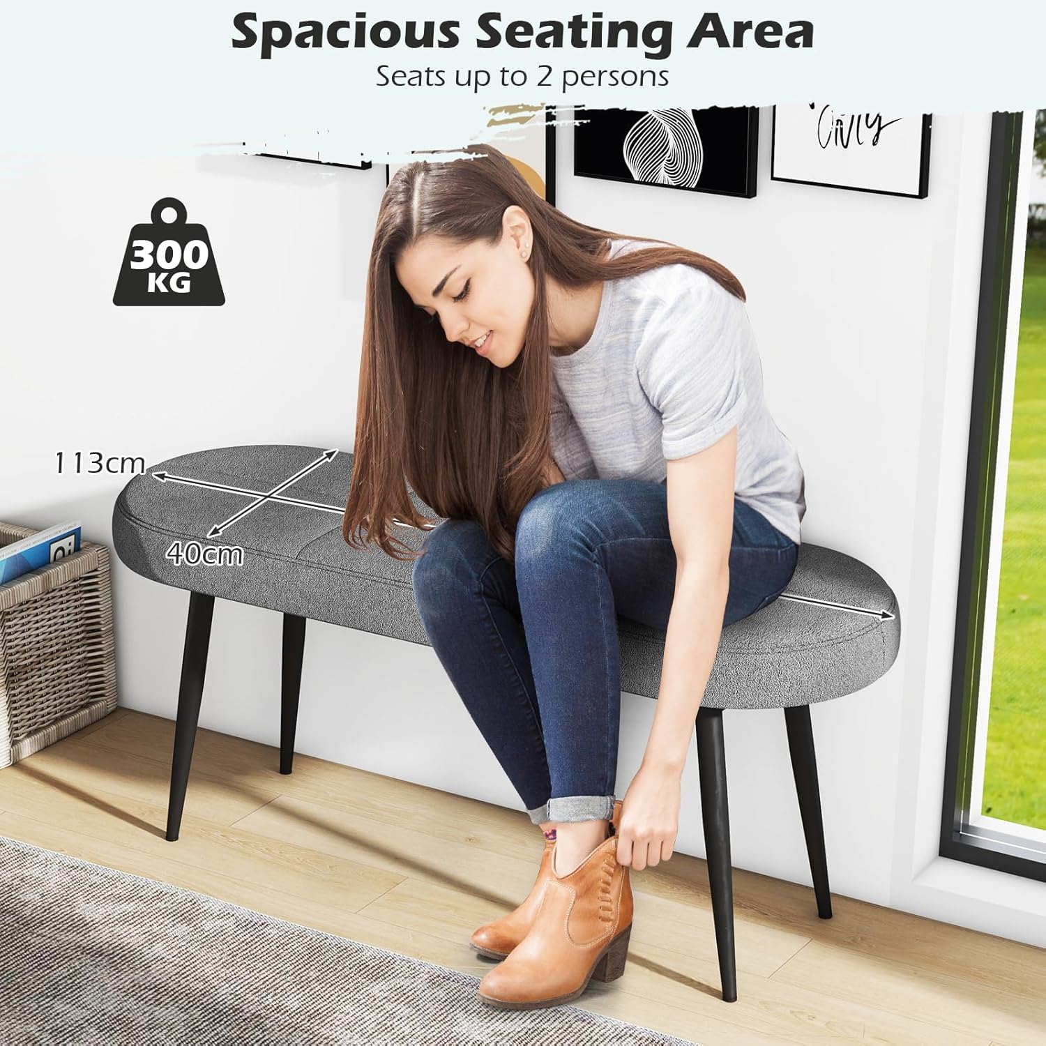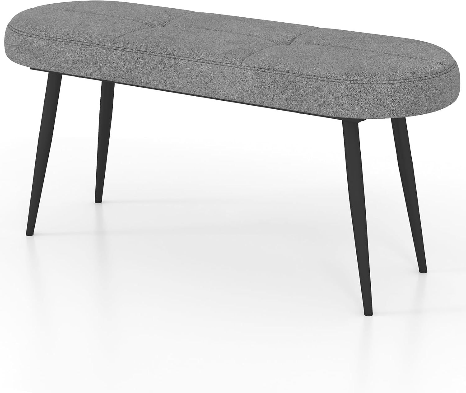 Banc d'entrée, banc rembourré avec coussin épais, banc de lit avec pieds en métal, charge 300 kg, gris