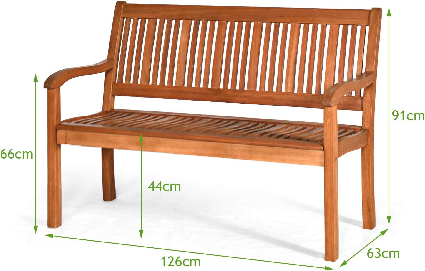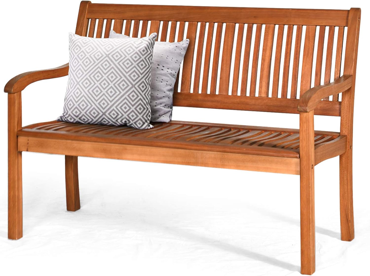Banc d’extérieur en bois d’acacia, banc de jardin avec dossier en forme d’arc et accoudoirs courbés