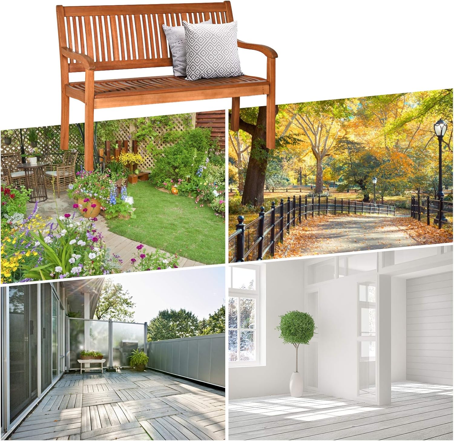 - Mise en place à différents endroits : Ce banc d’acacia, avec son apparence élégante, peut être bien adapté à chaque endroit. Il est également facile à nettoyer. Par exemple, il peut être placé dans un jardin, un balcon, un intérieur, etc., pour nous offrir un lieu de loisirs et de relaxation en cas de fatigue.