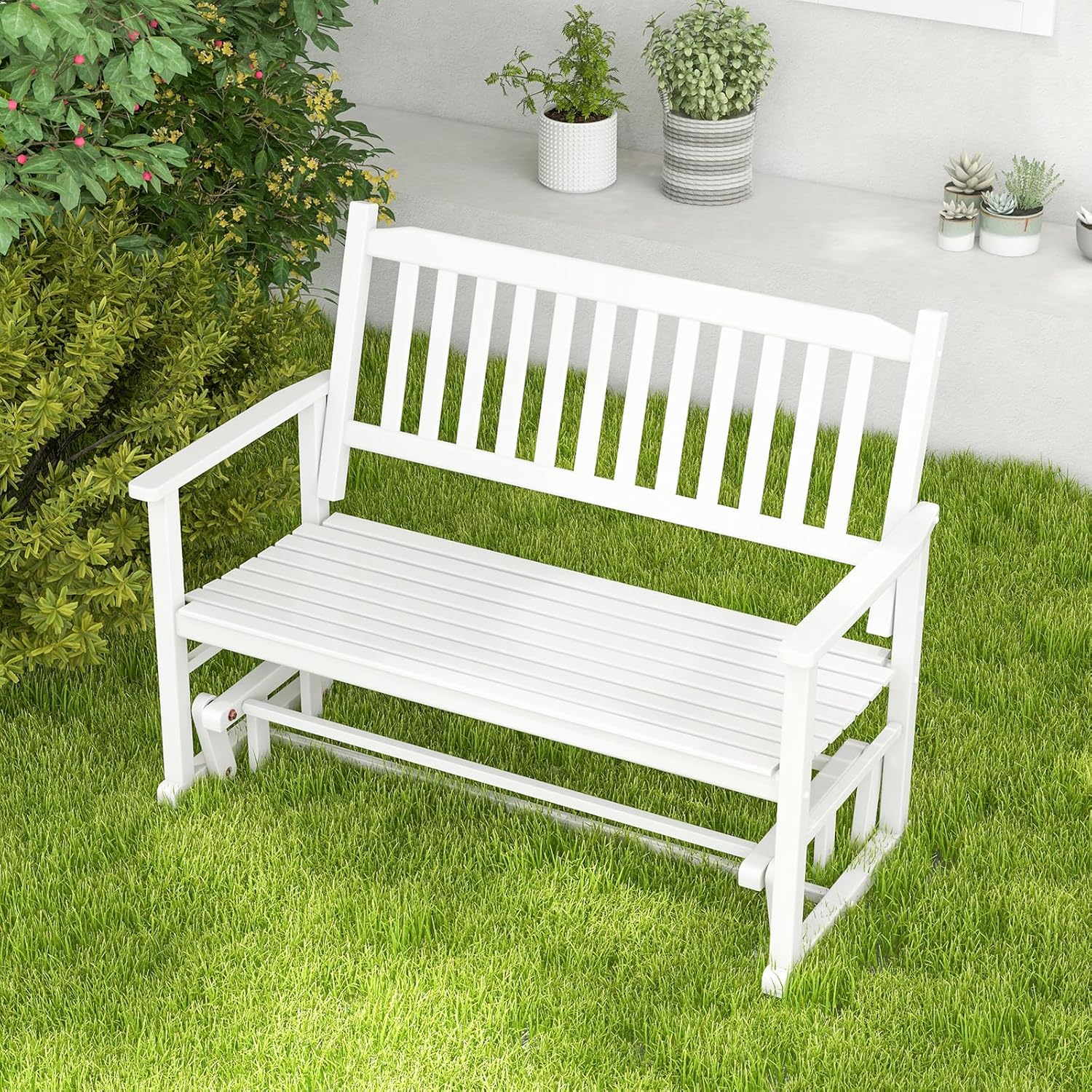 - Mouvement de glissement fluide : Ce banc de balancement extérieur vous permet de vous détendre et de trouver la tranquillité dans la sérénité de votre environnement en vous balançant doucement d'avant en arrière. Et les supports d'accoudoir assurent un mouvement silencieux.