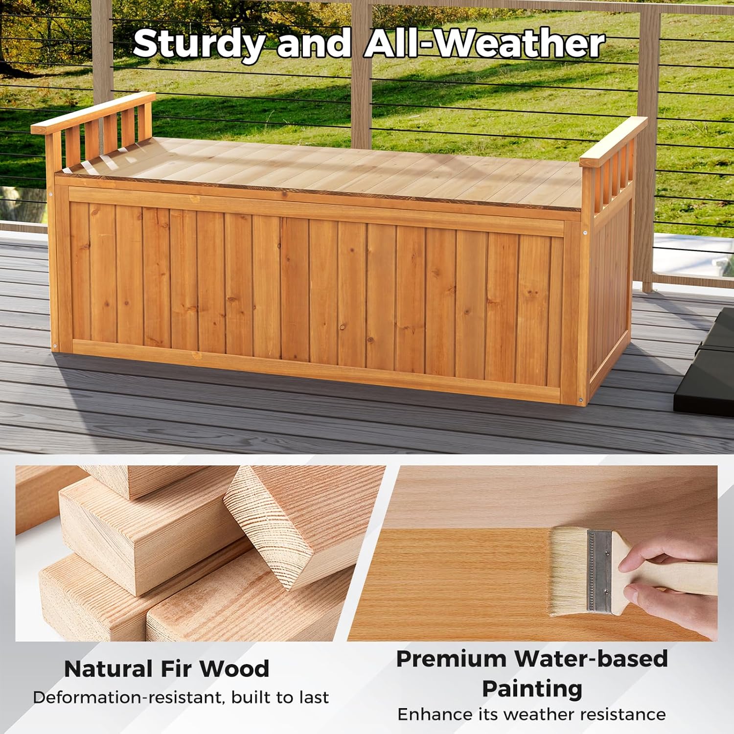 Banc de jardin 2 places en bois avec espace de rangement de 207 l, résistant aux intempéries