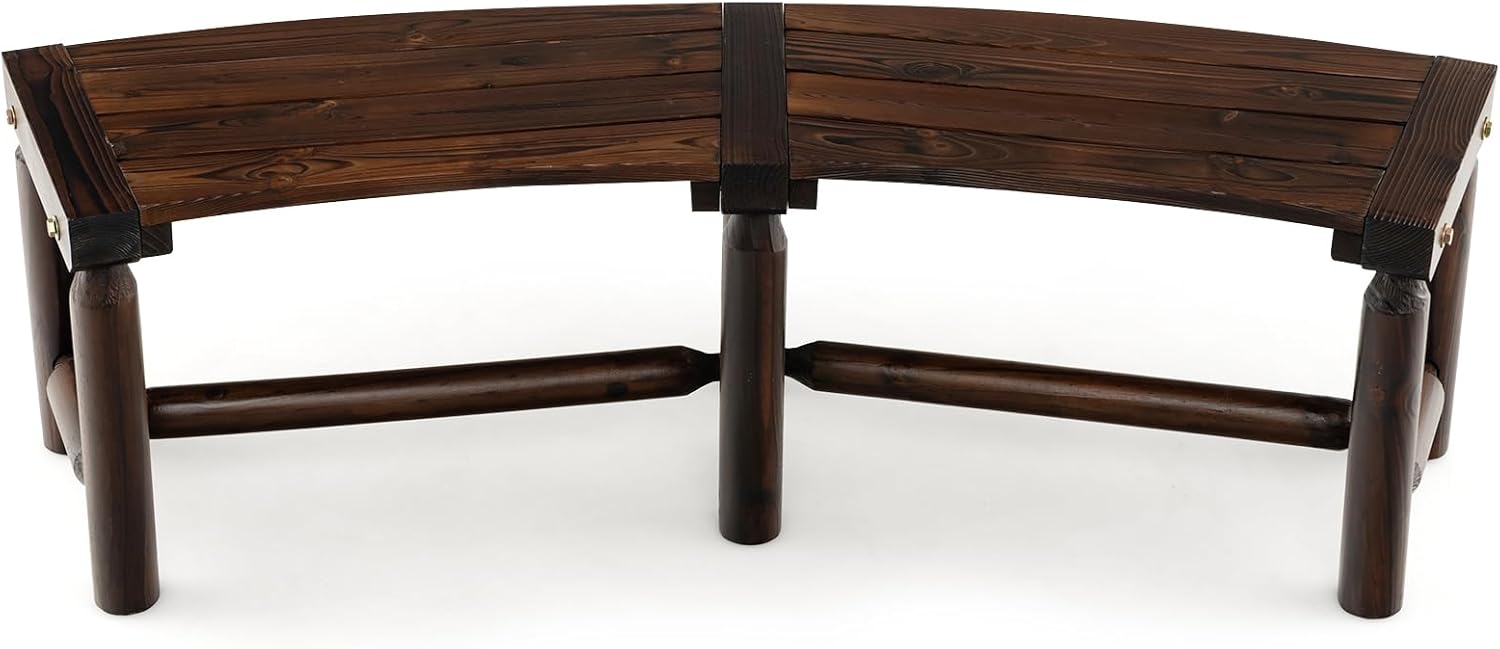 Venez embellir votre espace extérieur avec ce banc de jardin d'usage ! Ce banc est fabriqué en épicéa de haute qualité, bien fait, surface lisse sans échardes de bois, la construction en bois massif est solide et durable, pas facile à fissurer. Le banc est traité par carbonisation à haute température pour garantir une excellente résistance à la corrosion. Le design incurvé unique peut être parfaitement assorti à une table de salle à manger ronde d'extérieur. Capacité de charge parfaite de 322kg pour votre tranquillité d'esprit.