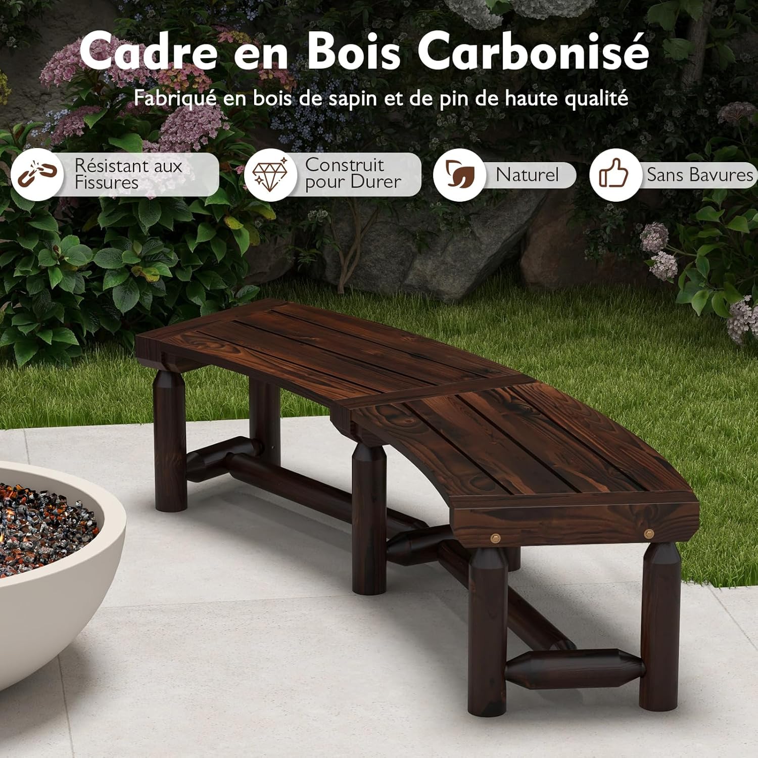| Libellé | Banc de jardin pour 2 personnes, banc de patio incurvé en bois d’épicéa carbonisé |