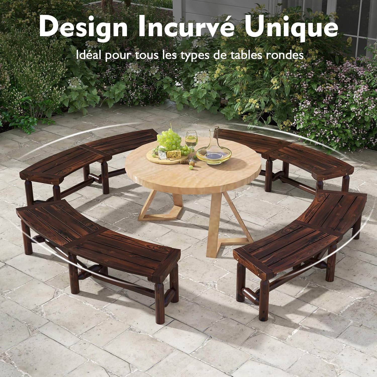 - Design incurvé unique s'harmonise avec les tables rondes d'extérieur