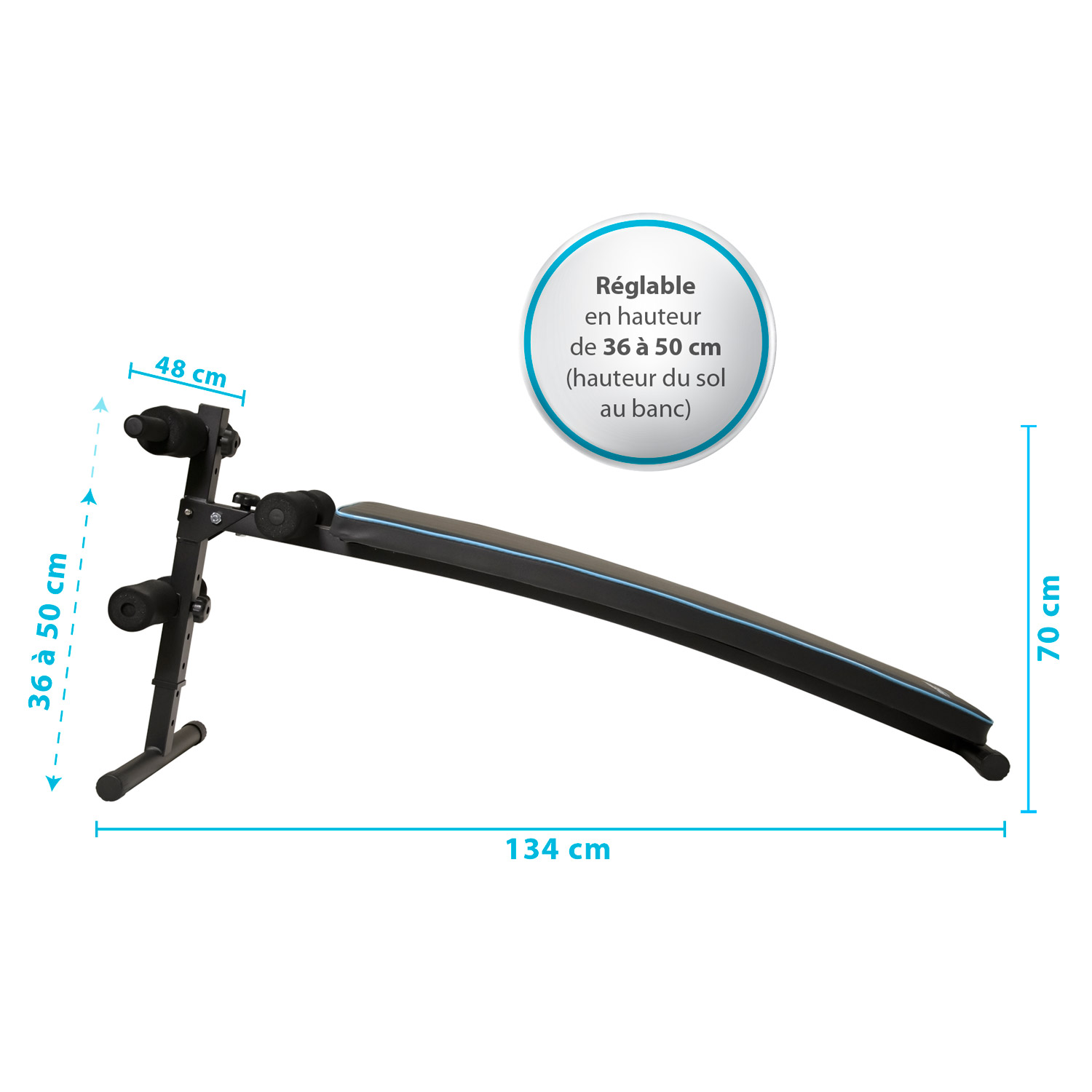 Le banc de musculation APOLLON de la marque SPARRAW est un appareil multifonction conçu pour pratiquer du sport à domicile. Un seul équipement pour une multitude d’exercices différents : abdominaux, pompes, sit ups, press... Faire de la musculation à domicile n’a jamais été aussi simple. Un banc de musculation vous permettra de réaliser une séance de musculation complète sur un certain nombre de parties du corps, il permet de cibler la zone à travailler, c'est donc l'outil idéal pour développer certains groupes musculaires de façon isolée. Il est possible d'ajouter une paire d'haltères à vos entraînement afin de progresser rapidement et atteindre vos objectifs : renforcement, prise de masse, rééducation ... L'appareil de musculation dispose d'une hauteur d'inclinaison réglable sur 5 niveaux afin de pouvoir varier les exercices selon vos objectifs. Son large dossier et ses rouleaux en mousse haute densité apportent confort, bien être et soutien à votre corps tout au long de l’entraînement. Sa structure robuste et stable. Léger et facilement transportable, le banc de musculation APOLLON peut facilement être déplacé afin de pouvoir profiter d’une séance de sport en intérieur ou en extérieur à tous moment. Que ce soit pour du renforcement musculaire ou en complément d'une activité physique, ce banc d’entraînement multifonctionnel pourra vous accompagner sur chacune de vos séances. Poids du produit : 6 Kg Dimension produit : 134 x 48 x 70 cm Matière : Acier et mousse Couleur : Noir Bleu Inclinaison(S) Possible(S) : 5 Niveaux - Min.36 Cm / Max. 50 Cm Nombre De Carton(S) : 1 Dimensions Carton 1 (L. X L. X H. Cm) : 134.5 X 31.5 X 16 Cm Poids Carton 1 (Kg) : 8 Kg A Monter Soi-Même : Oui Prémonté : Oui Temps De Montage (Mn) : Environ 15 Mn S’assurer de disposer d’un espace suffisant (1m conseillé) pour les déplacements autour du produit en toute sécurité. Placez l’appareil sur une surface plane. Placez un tapis sur le sol pour réduire les impacts. Vérifiez le poids maximum que votre équipement peut supporter et prenez en compte votre poids ainsi que les charges portées pour une utilisation optimale de l'appareil.