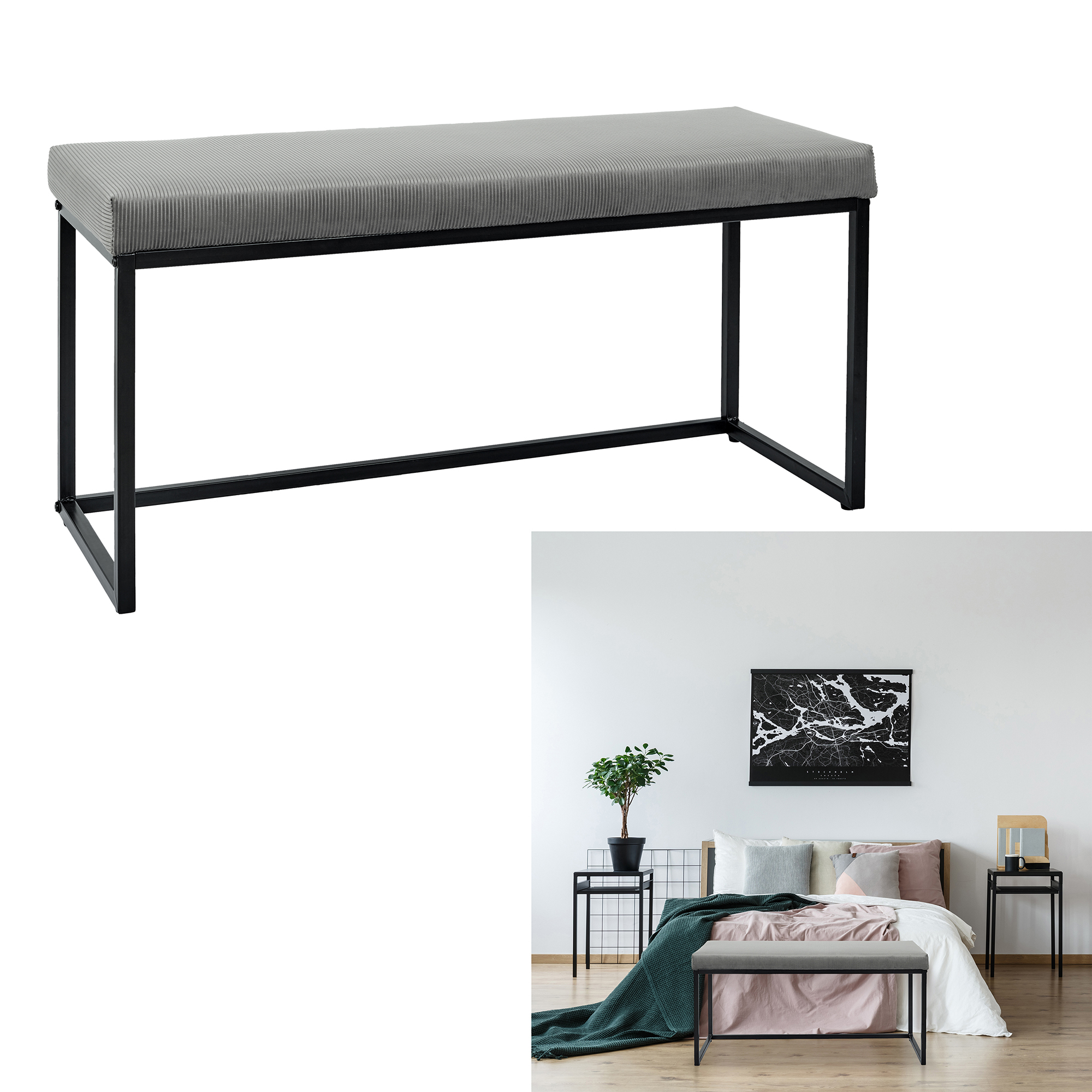 Libellé Banc Giulia gris velours côtelé