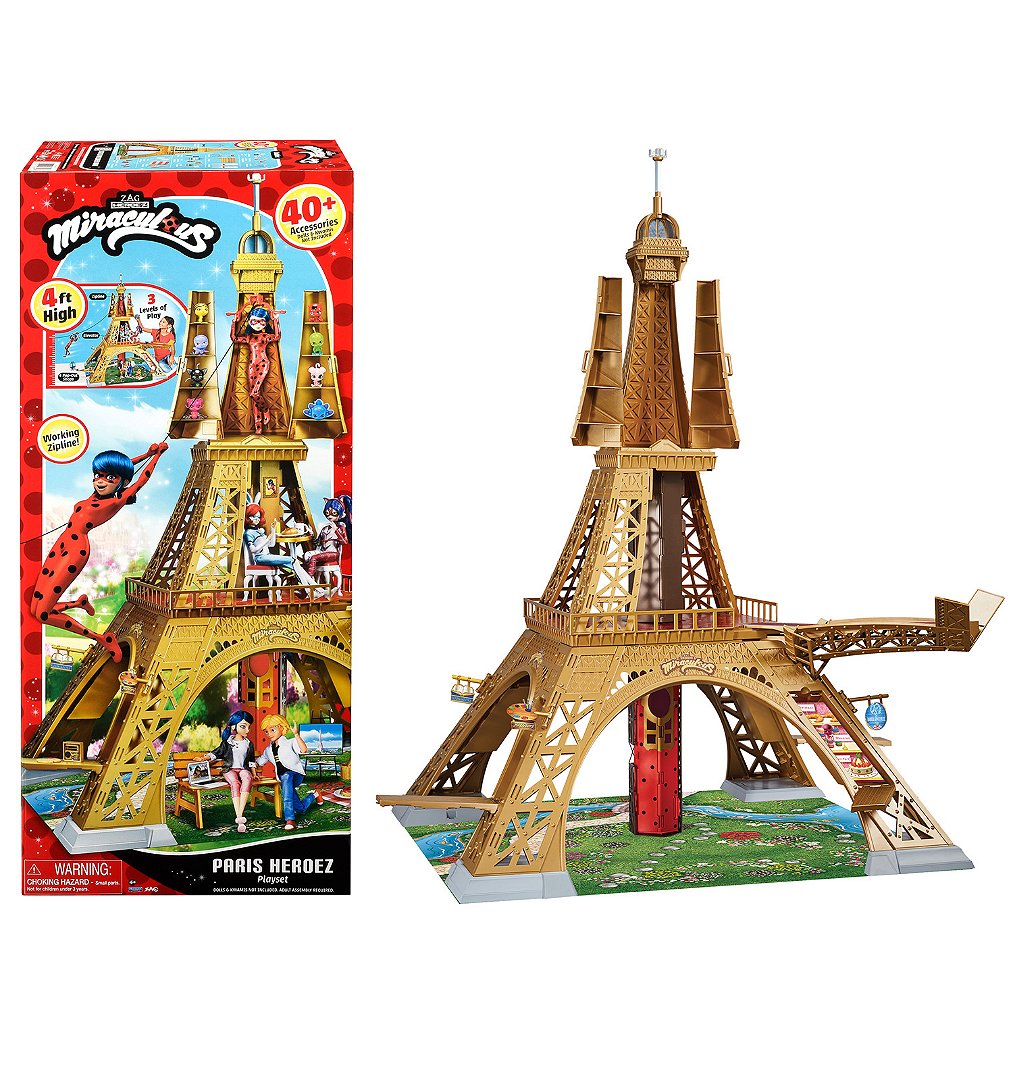 | Libellé | Bandai - Miraculous - Playset Deluxe Paris - Grande Aire de jeu Monument 1,20m - Tour avec +40 Accessoires, Étages, Magasins, Tyrolienne - Poupées no |
