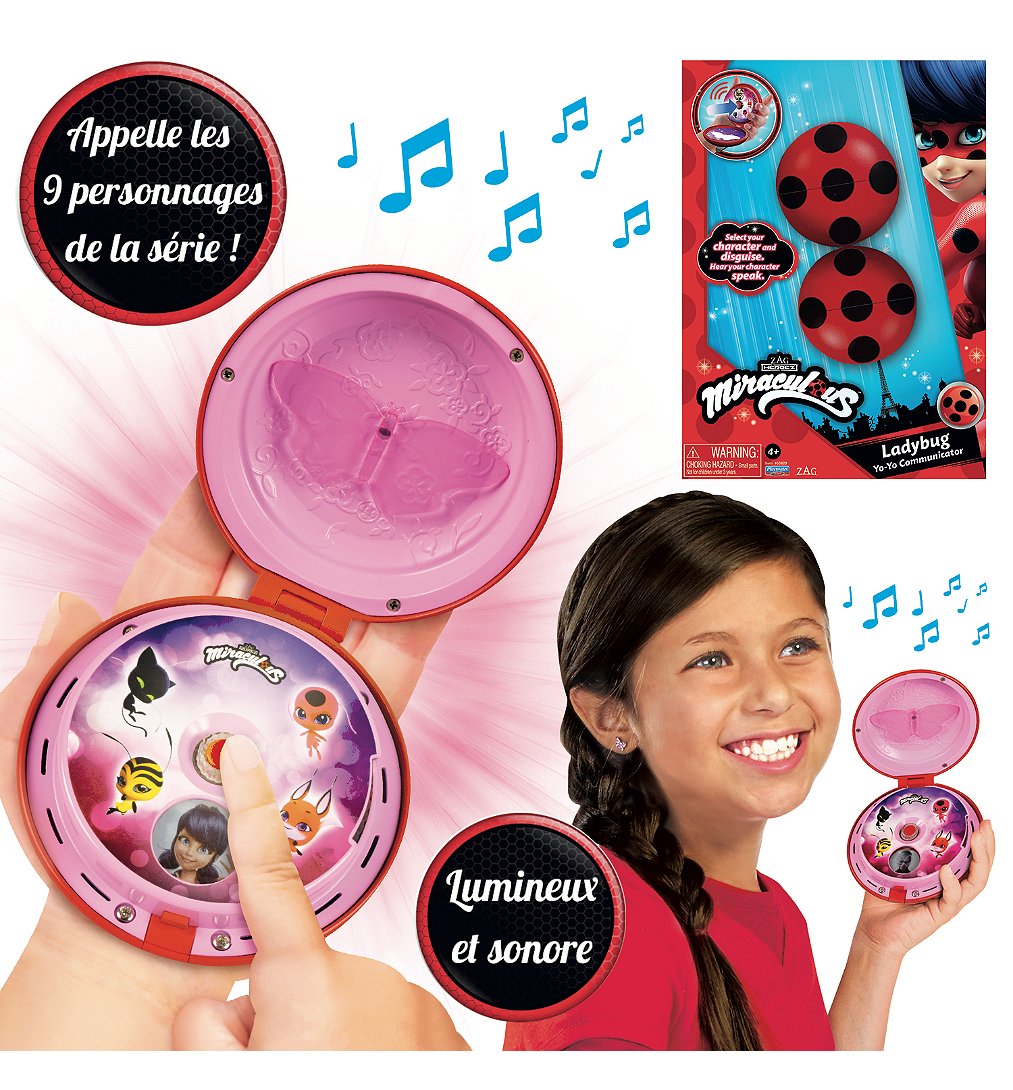 2 fonctions pour le télephone magique de Ladybug ! Lumineux et sonore, il permet d'appeler les différents personnages de la série, qui répondent et parlent. Environ 30 sons/phrases inclus. Fonctionne avec 3 piles LR44 incluses.