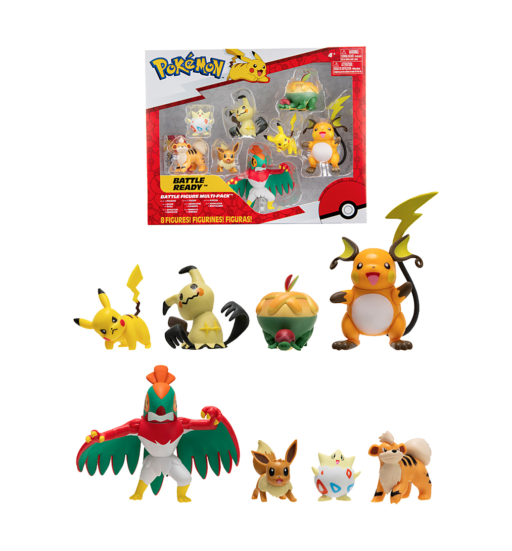 | Libellé | Bandai - Pokémon - 8 figurines Battle - Pikachu, Evoli (Eevee), Dratatin (Appletun), Togepi, Caninos (Growlithe), Mimiqui (Mimikyu), Raichu et Brutal |