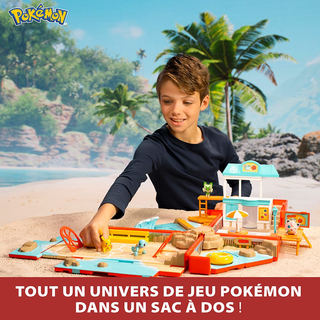 | Libellé | Bandai - Pokémon - Sac à dos du dresseur Plage - Univers de Jeu Pokémon avec mini-jeux - Sac qui se transforme en Aire de jeu Plage - Figurine Pikach |
